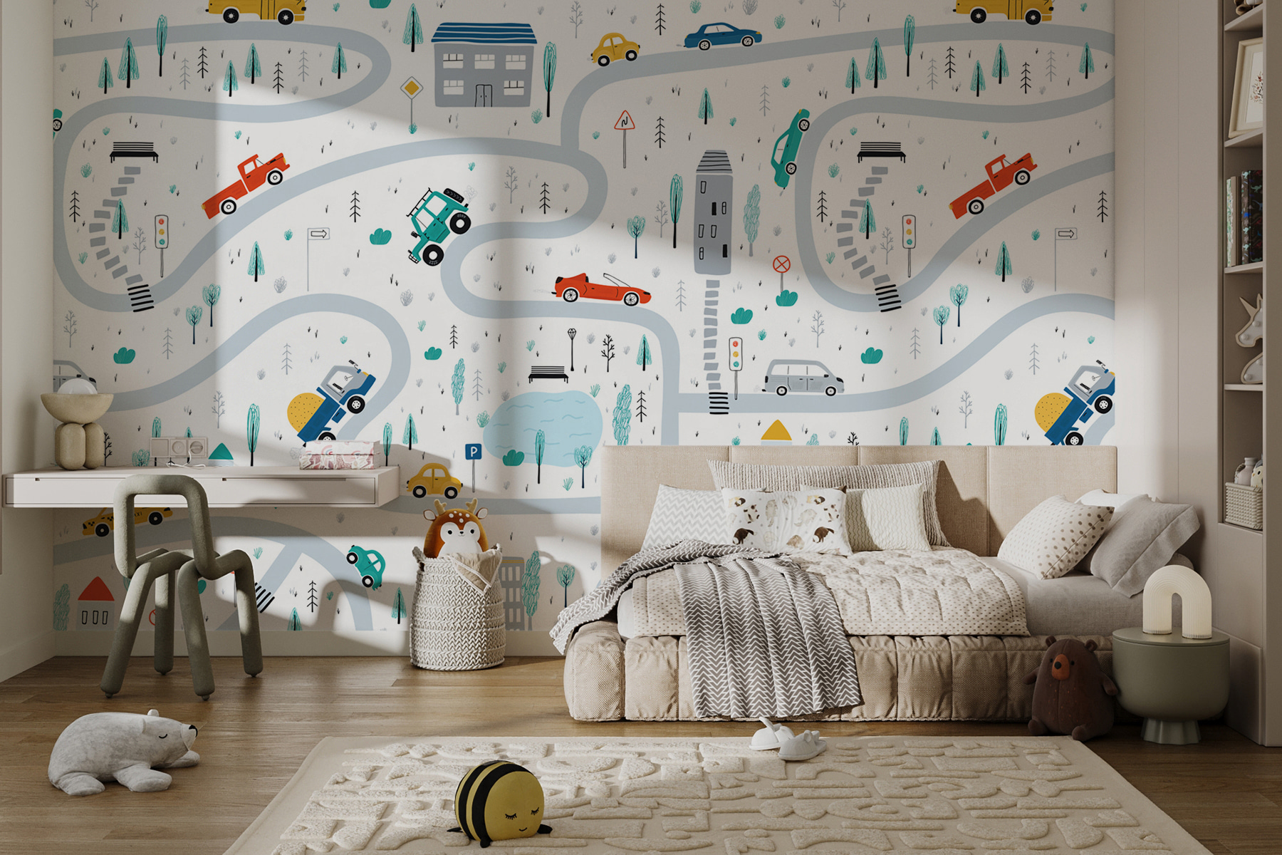 Tem um miúdo que adora carros e edifícios? Este “Mapa de Murais de Parede de Carros e Edifícios” é um sonho total! Imagina – estradas vibrantes que serpenteiam por toda a parede, carros coloridos a circular e pequenos edifícios encantadores a pontuar o cenário. É como viver numa mini-cidade! Este mural ilumina o quarto de qualquer criança, transformando paredes simples em aventuras divertidas. É perfeito para contar histórias ou dar asas à imaginação dos mais pequenos – basta pensar nos contos de embalar que se vão desenrolar! Além disso, as cores suaves e os desenhos caprichosos tornam o espaço acolhedor e divertido. Não se trata apenas de um mural; é um convite para explorar, sonhar e brincar todos os dias.