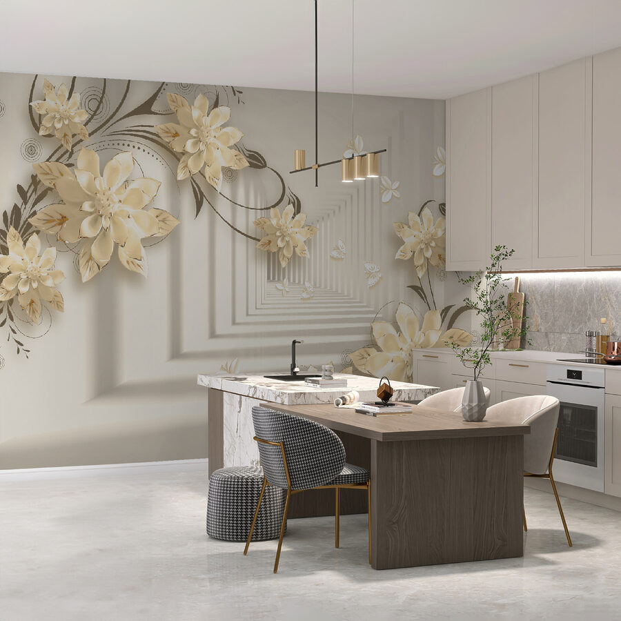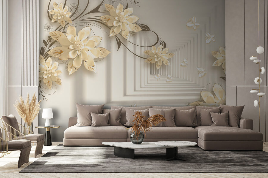 Imagine ter uma parede que parece um jardim caprichoso – mesmo na sua sala de estar! Este mural “Elegant Floral Design with Butterflies” faz exatamente isso. É como entrar numa fantasia serena onde as flores florescem sem parar e as borboletas esvoaçam. Imagine estas flores 3D elegantes a aparecerem, criando uma vibração suave e sonhadora… É como ter a arte da natureza mesmo dentro de casa!