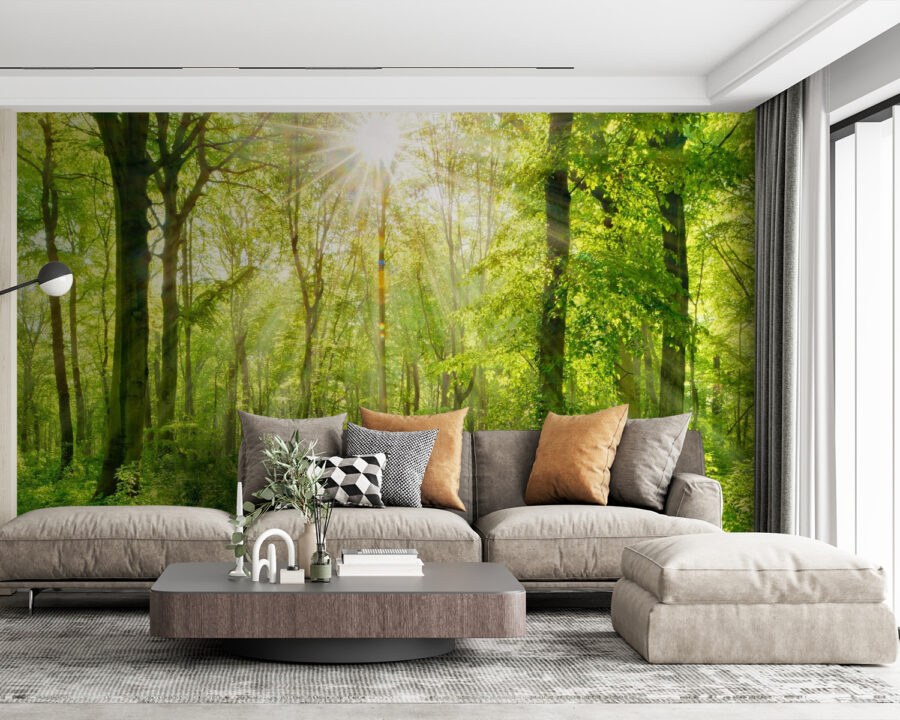 Transforme o seu espaço com este mural de parede cativante, com raios de sol a atravessar árvores exuberantes. Imagine entrar no seu quarto e sentir-se como se tivesse entrado numa floresta tranquila – a derradeira zona de relaxamento da natureza. Os verdes vibrantes sobressaem, convidando a vibrações calmas, quase como se pudesse ouvir o suave farfalhar das folhas. Quer seja o seu recanto de leitura ou um ponto de encontro animado, este mural é um truque delicioso para os sentidos. É como uma lufada de ar fresco para as suas paredes, criando o cenário perfeito para conversas aconchegantes ou momentos tranquilos a solo. Além disso, é agradável pensar que um pouco da natureza pode trazer tanta alegria para dentro de casa.
