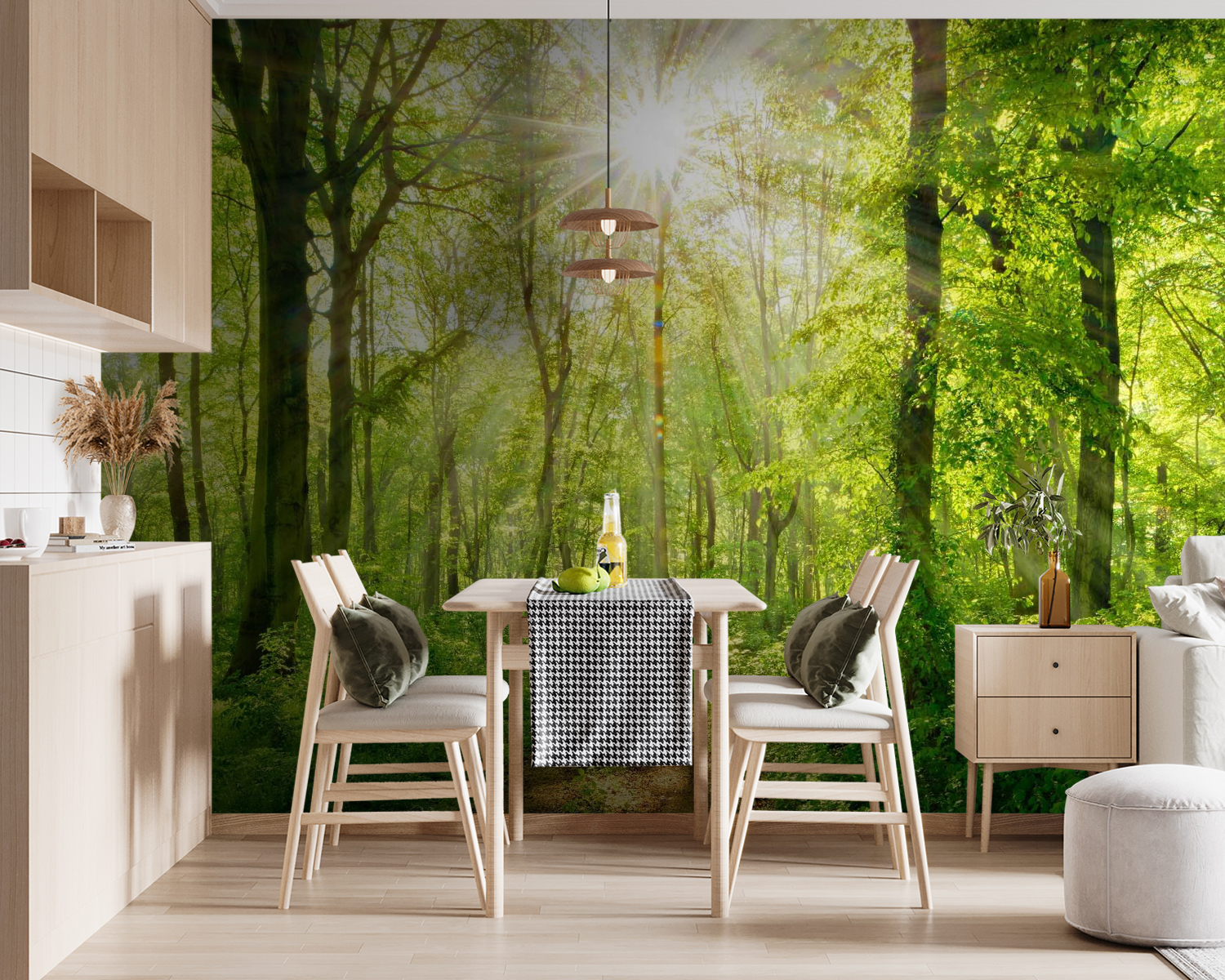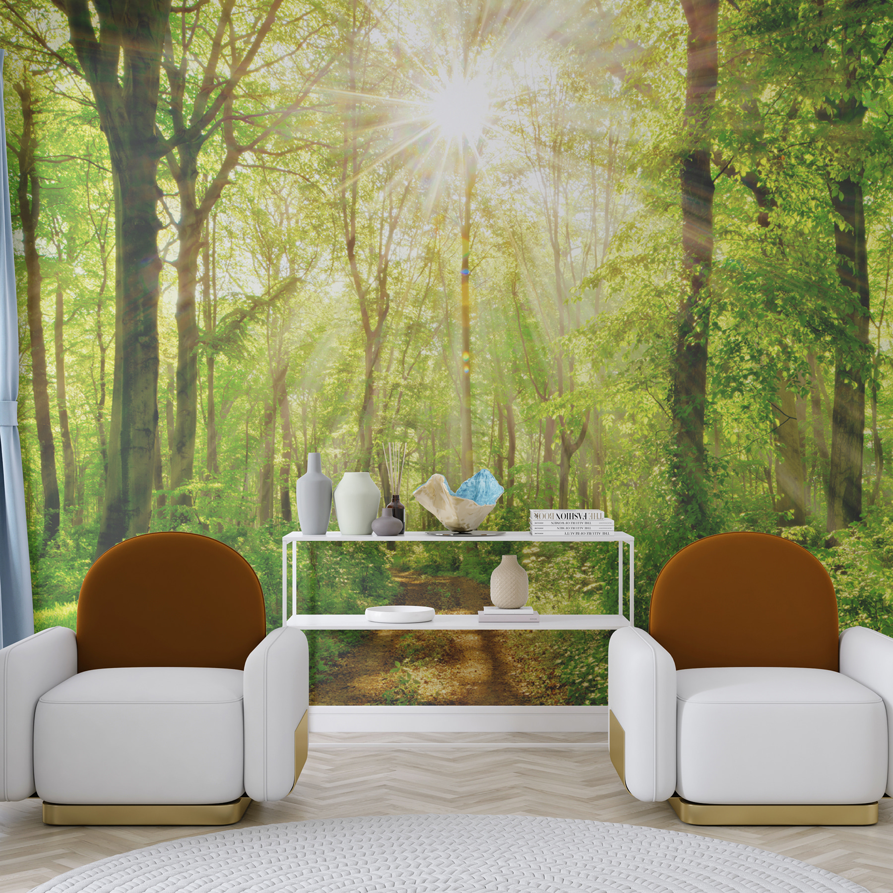 Transforme o seu espaço com este mural de parede cativante, com raios de sol a atravessar árvores exuberantes. Imagine entrar no seu quarto e sentir-se como se tivesse entrado numa floresta tranquila – a derradeira zona de relaxamento da natureza. Os verdes vibrantes sobressaem, convidando a vibrações calmas, quase como se pudesse ouvir o suave farfalhar das folhas. Quer seja o seu recanto de leitura ou um ponto de encontro animado, este mural é um truque delicioso para os sentidos. É como uma lufada de ar fresco para as suas paredes, criando o cenário perfeito para conversas aconchegantes ou momentos tranquilos a solo. Além disso, é agradável pensar que um pouco da natureza pode trazer tanta alegria para dentro de casa.