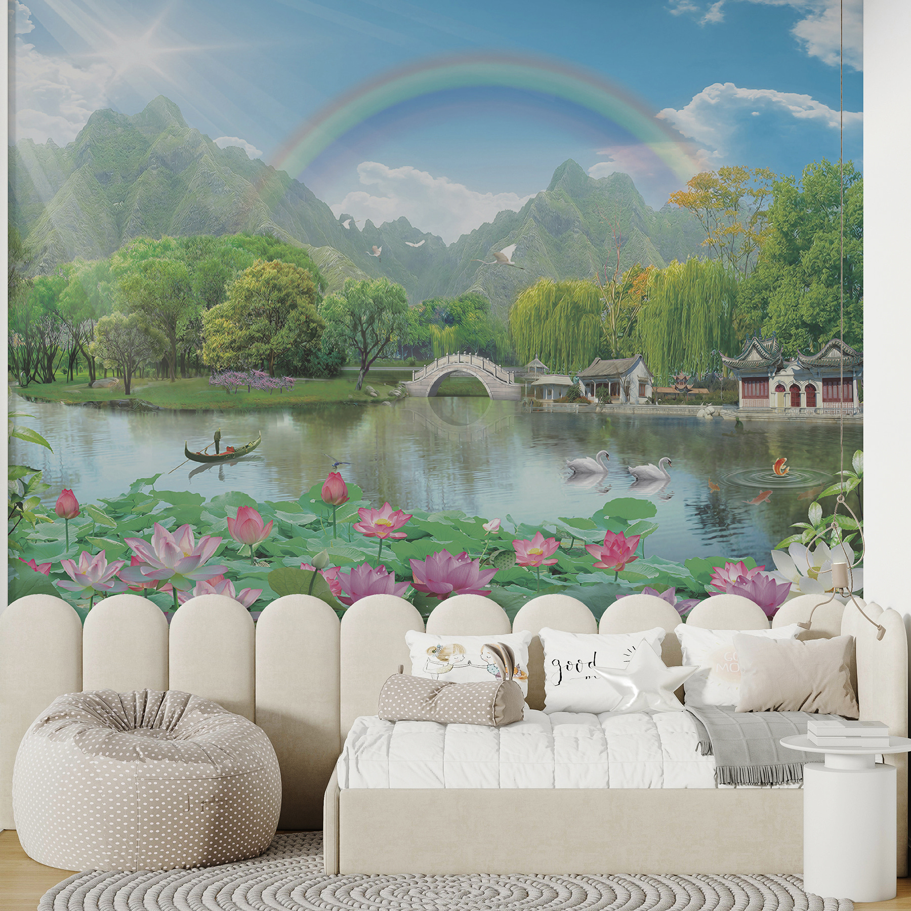 Imagine entrar numa sala e ser transportado para um paraíso sereno à beira de um lago… Consegue senti-lo? É exatamente isso que este mural de parede faz. “Paisagem serena com flores de lótus” é como um suspiro suave para a sua alma – calmante e tranquila. Perfeito para infantários ou qualquer espaço que precise de um toque de paz. Imagine-se a descontrair depois de um dia agitado, a desfrutar do brilho suave do sol poente, o ar cheio do doce aroma das flores de lótus… Vai sentir-se como se estivesse de férias todos os dias! Além disso, é um ótimo início de conversa para os convidados (ou um cenário perfeito para o Instagram). Quer esteja a decorar o quarto de um bebé ou a dar um toque de natureza ao seu espaço de vida, este mural vai certamente fazê-lo sorrir sempre que o vir.