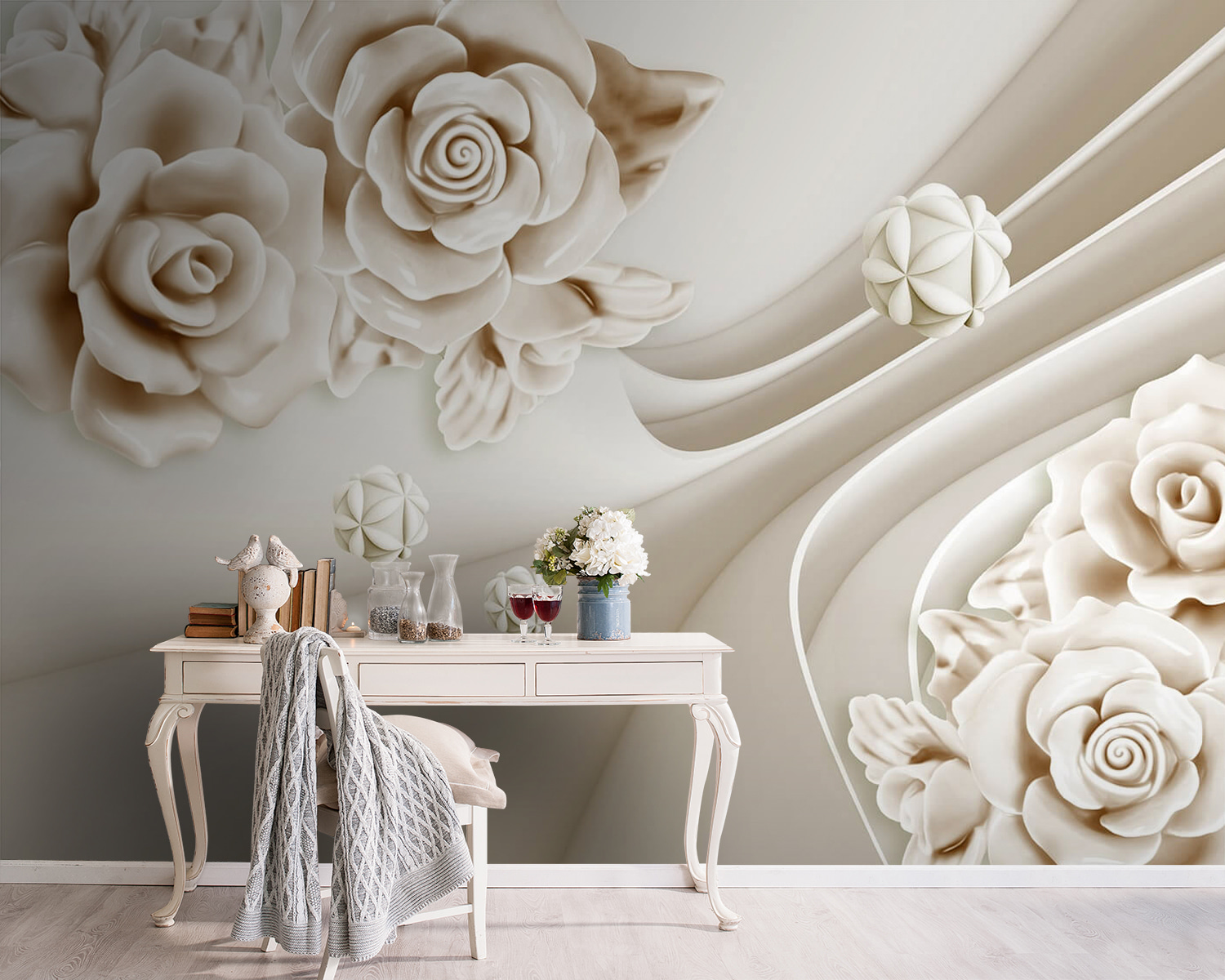 Transforme o seu espaço com este mural encantador, com delicadas rosas brancas flutuando em ondas suaves. Imagine entrar numa sala que parece um jardim sereno, onde cada olhar convida a uma sensação de calma. A elegante interação entre curvas suaves e detalhes florais cria uma atmosfera de sonho, perfeita para relaxar após um longo dia. Os visitantes podem simplesmente se perder em pensamentos, admirando o equilíbrio artístico entre a natureza e o design. Seja para decorar um quarto ou um recanto aconchegante para leitura, este mural transmite elegância — sem exageros. É o tipo de toque que torna os momentos do dia a dia especiais, mesmo que você esteja apenas tomando um café e olhando para a parede. Uma lembrança sutil de que a beleza pode ser encontrada nos detalhes mais simples.