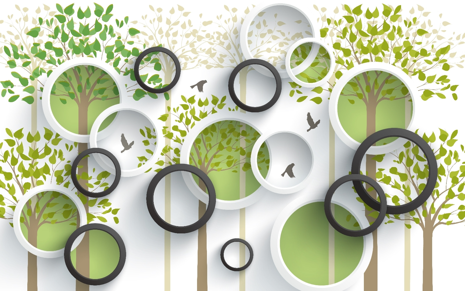 Este mural não é uma lufada de ar fresco? Imagine acordar com a visão de pássaros e árvores aninhados em molduras circulares peculiares – é como ter uma floresta de bolso mesmo em sua casa. Este design “Fotomurais Pássaros e Árvores” seria perfeito para quem gosta de um toque de natureza, mas com um toque diferente. Os verdes vibrantes e os pássaros dão ao quarto uma elevação instantânea; é como ter uma pequena fuga da natureza sem sair do seu sofá.