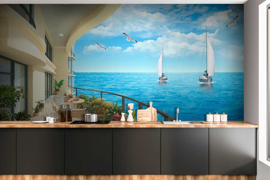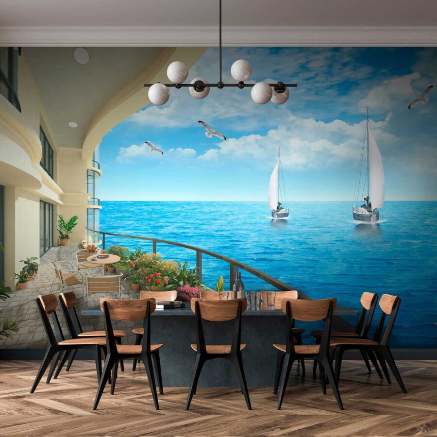 Imagine entrar numa sala onde as paredes trazem a brisa do oceano diretamente aos seus sentidos. Este mural de parede, com uma varanda com uma vista deslumbrante do oceano e barcos à deriva preguiçosamente sobre a água, transforma qualquer espaço num retiro costeiro. Imagine-se a beber o seu café da manhã com a sinfonia de ondas suaves e aves marinhas a encher o ar – quem não quereria isso? Os azuis vibrantes e a vegetação luxuriante convidam ao relaxamento. É como ter umas férias intermináveis em casa, dando às paredes uma lufada de ar fresco do mar. Perfeito para quem sonha acordado ou para quem precisa de alguma tranquilidade nas suas vidas. Basta pendurá-lo e deixar as ondas rolarem!