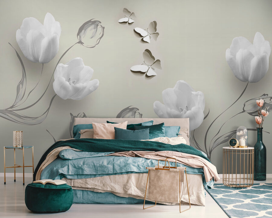 1 avaliação de Papel de parede Flores brancas e borboletas