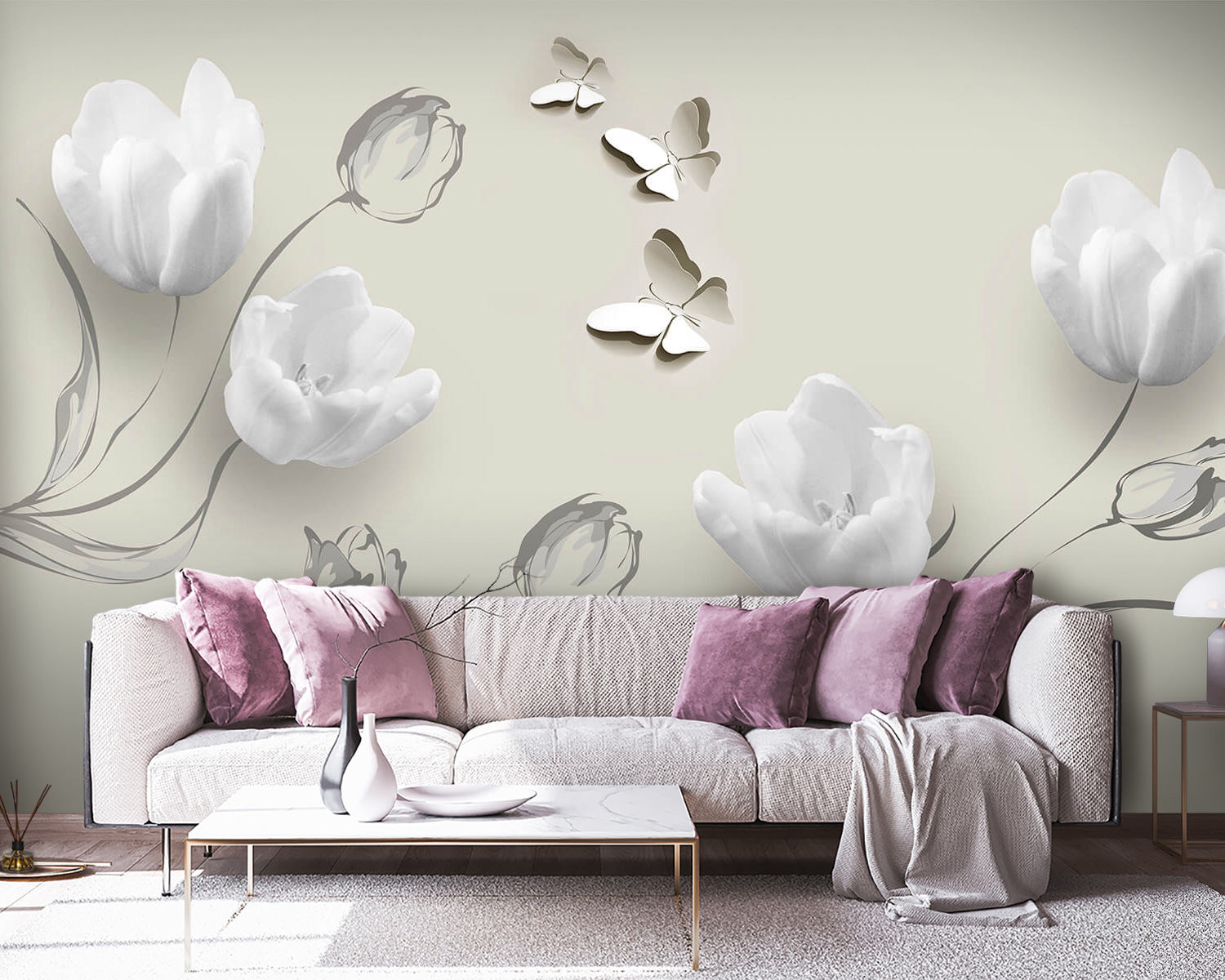 1 avaliação de Papel de parede Flores brancas e borboletas