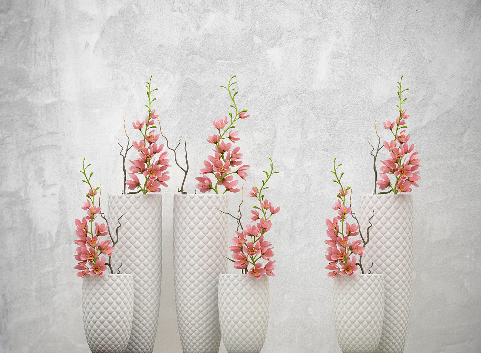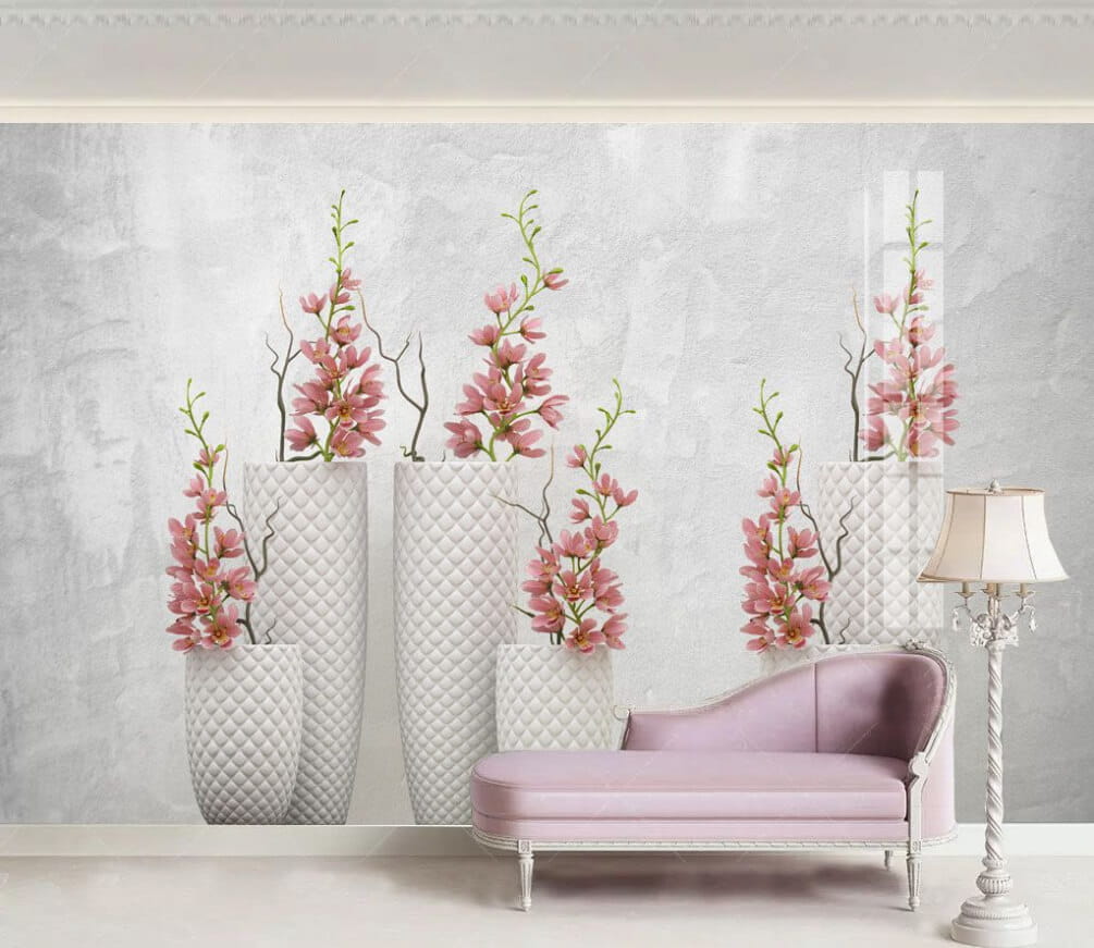 Transforme o seu espaço com este encantador mural de parede com um charmoso conjunto de vasos brancos decorados com flores cor-de-rosa. É como ter um mini jardim japonês na sua sala de estar, sem precisar regar nada! Imagine chegar a casa depois de um longo dia, deitar-se no sofá e ser recebido por estas lindas flores. As cores suaves e os detalhes delicados trazem uma sensação de calma, como uma brisa suave num dia de primavera. Perfeito para criar um recanto acolhedor ou alegrar um canto monótono. Quem diria que a decoração poderia ser tão sedutora?
