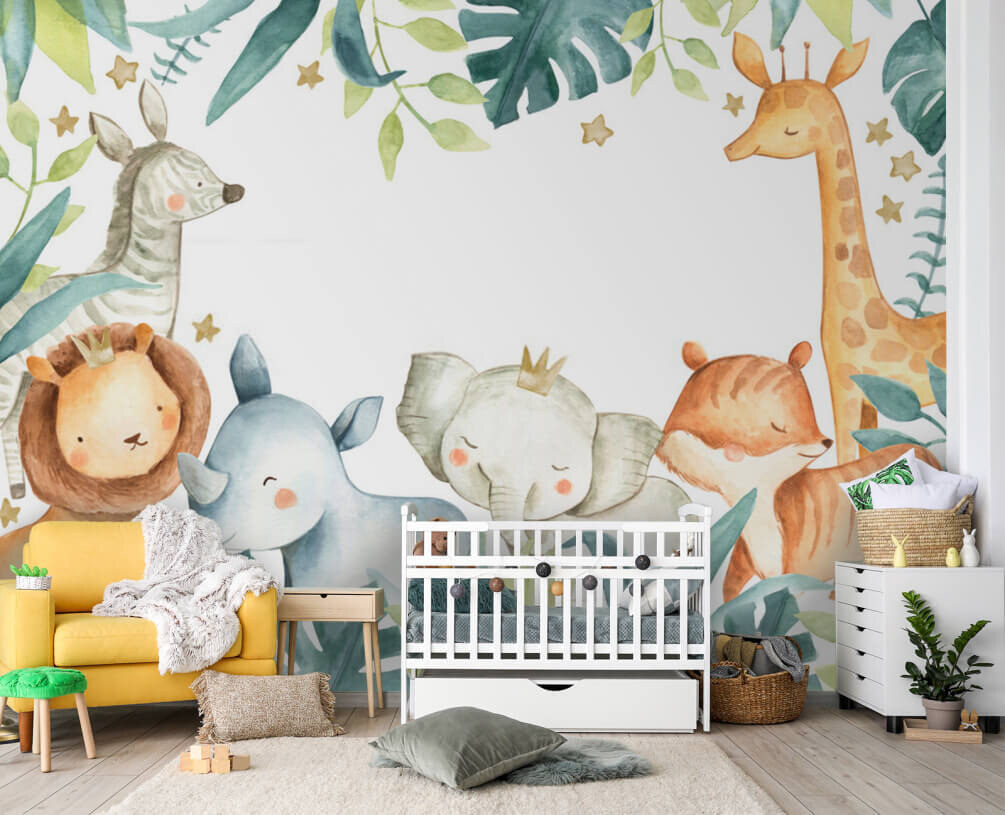 Quer alegrar o espaço do seu filho? Este mural adorável, “Aguarela de um elefante e uma raposa”, é absolutamente indispensável! Imagine tons suaves e sonhadores de aguarela a pintar uma cena encantadora na parede – perfeita para um quarto de criança ou berçário! Os animais bonitos e simpáticos, como um elefante com uma pequena coroa e uma raposa doce e adormecida, irão certamente provocar um sorriso. Além disso, a moldura de folhas e as estrelas caprichosas acrescentam um toque extra de magia. Imagine a alegria do seu filho, envolvido neste mundo encantador, semelhante a um livro de histórias. Não é apenas uma decoração – é uma dose diária de alegria! E quem é que consegue resistir a uma aventura de safari para o seu pequeno explorador?