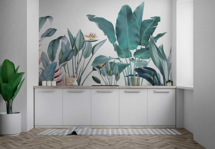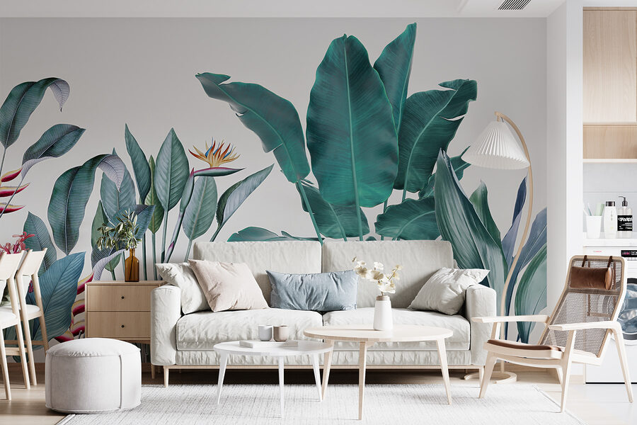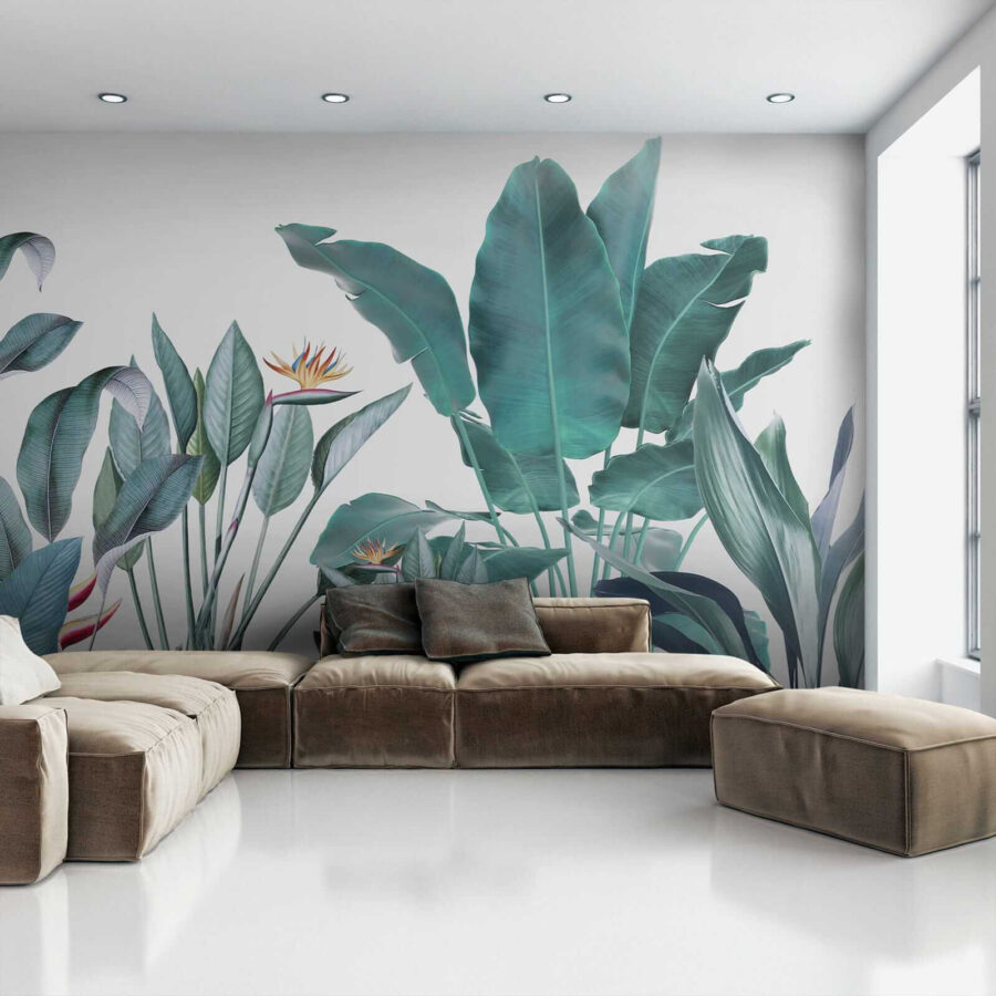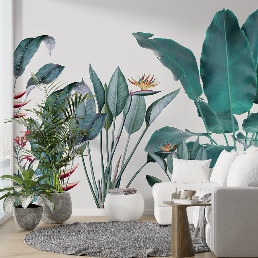Quer transformar o seu espaço? Veja este lindo mural de parede chamado “Tropical Foliage with Vivid Colors” – perfeito para trazer um toque da selva para a sua sala de estar! Imagine acordar com esta vegetação vibrante todos os dias… é como umas mini-férias para os seus olhos. A mistura de cores arrojadas e os detalhes intrincados nas folhas e flores fazem com que se sinta como se estivesse num paraíso tropical exuberante.