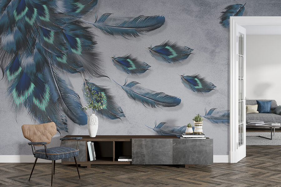 Transforme qualquer divisão com os encantadores murais de parede Blue Feathers. Imagine acordar com uma suave cascata de penas deslumbrantes que parecem dançar nas suas paredes. Os azuis serenos e os verdes vivos criam uma atmosfera calmante, perfeita para relaxar após um longo dia. Imagine noites aconchegantes com um livro, com a suavidade do design a envolvê-lo em tranquilidade. É como uma lufada de ar fresco em qualquer espaço. Os amigos vão certamente reparar neste toque único e, quem sabe, pode ser que desperte uma conversa cheia de penas! Perfeito para quem procura dar um toque de personalidade à sua decoração.