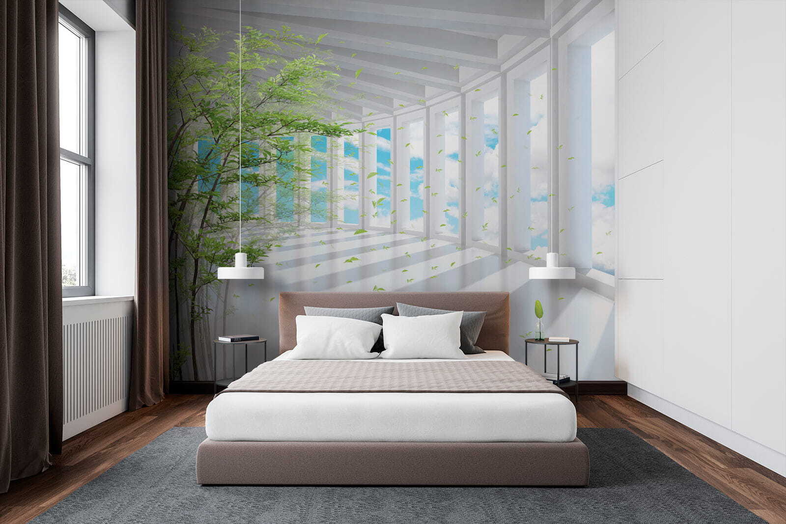 2 avaliações de Papel de parede Corredor iluminado pelo sol com folhas vibrantes