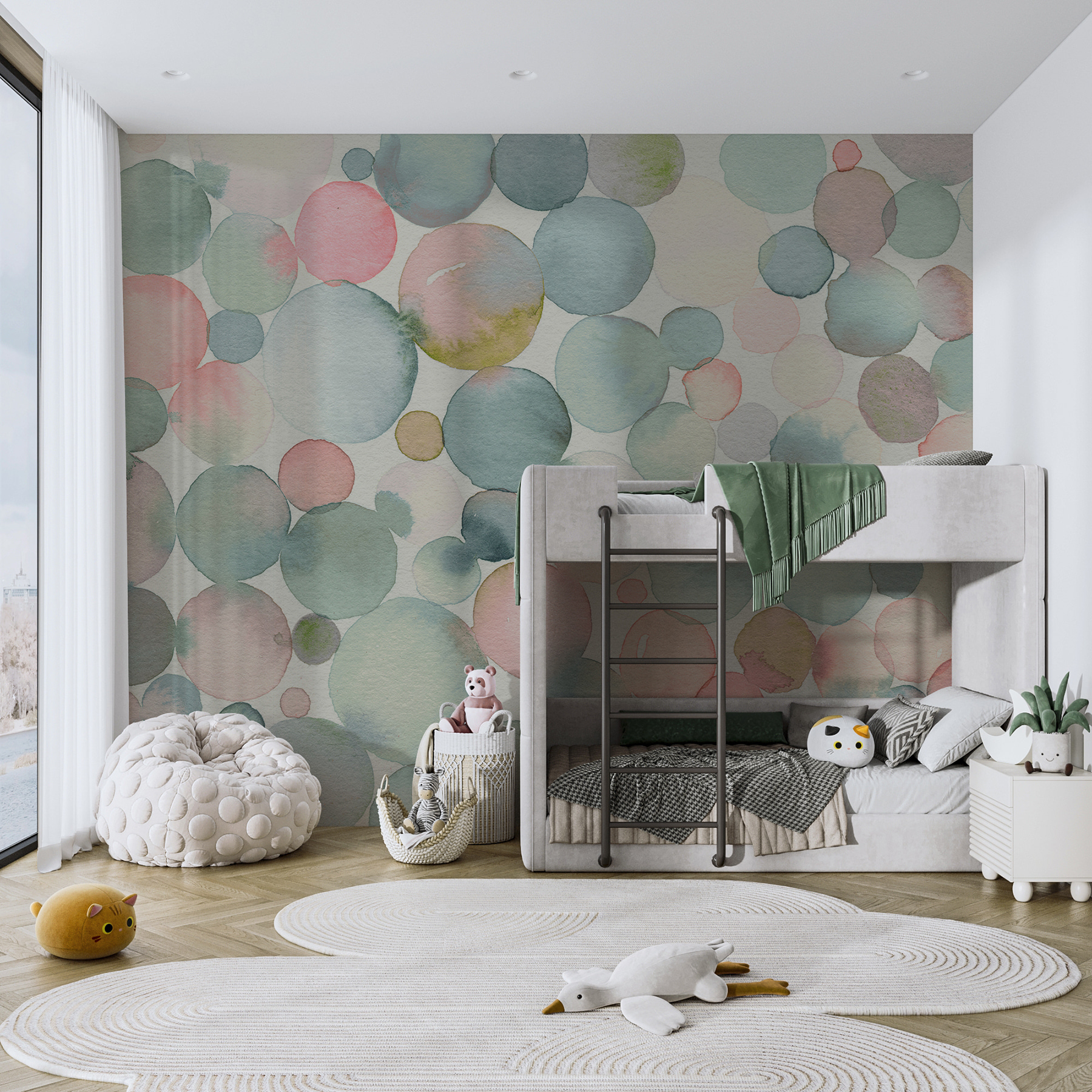 Imagine isto: O seu bebé está a adormecer e estes círculos tranquilos dançam nos seus sonhos. Olhar para eles é como respirar fundo – super calmante e tão adorável! E, sinceramente, quem não gostaria de ter um pouco de magia de aguarela nas suas paredes? É um abraço suave para os seus sentidos, mais do que apenas um mural… é como trazer um pedaço de serenidade artística para a vida quotidiana. Perfeito para aqueles que apreciam a simplicidade com uma pitada de encantamento. 🌸