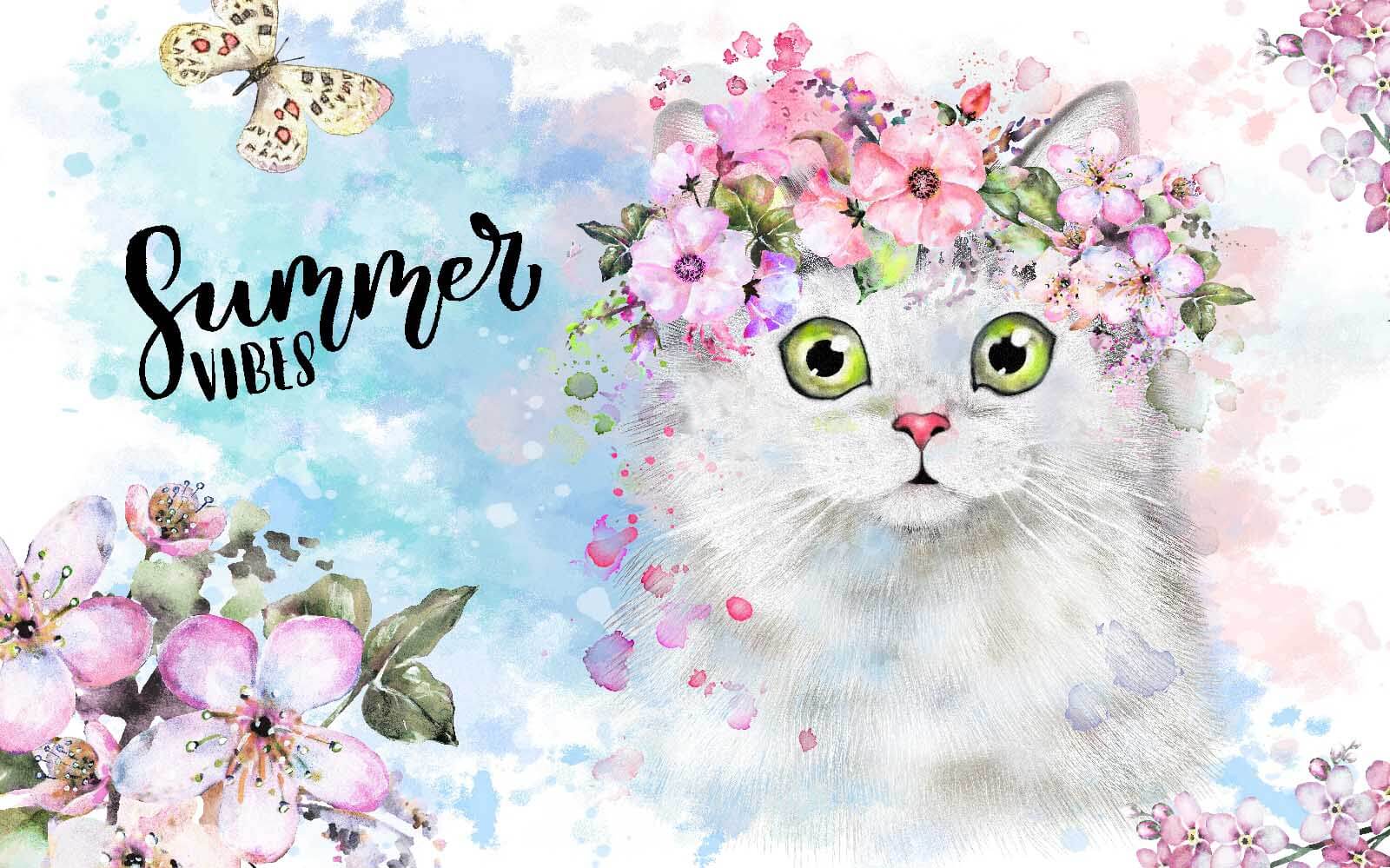 Transforme qualquer divisão com este mural de parede encantador que apresenta um gato encantador adornado com um ramo de flores. Imagine-se a entrar num espaço onde esse rosto cativante o cumprimenta – é como um amigo peludo a animá-lo! As vibrações suaves da aguarela criam uma sensação de calma, perfeita para um recanto acolhedor ou uma sala de jogos vibrante.