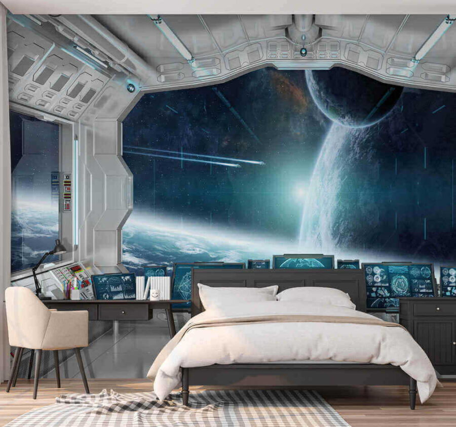 Imagine entrar no seu quarto e sentir que está a comandar uma nave espacial – parece fixe, certo? Este mural de parede faz exatamente isso. É como um portal para outro universo, com controlos futuristas e uma vista deslumbrante do espaço! Perfeito para sonhar em grande e partir em aventuras imaginárias – as crianças e os adultos de coração jovem vão adorá-lo. Não se trata apenas de um mural; é uma experiência. Instalar isto no seu espaço transforma-o instantaneamente num país das maravilhas de ficção científica. Consegue imaginar tomar o seu café da manhã com uma vista de galáxias distantes? Falar de um começo estelar para o dia! 🚀✨