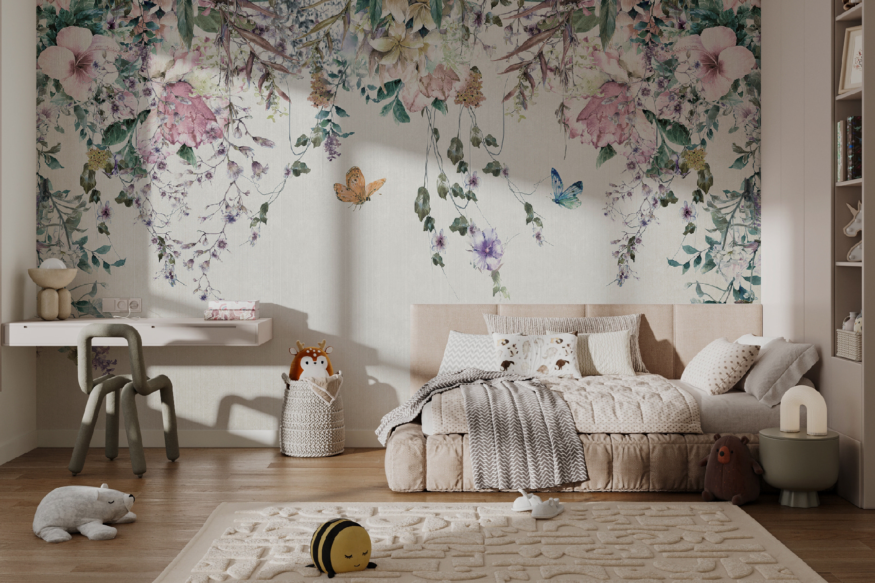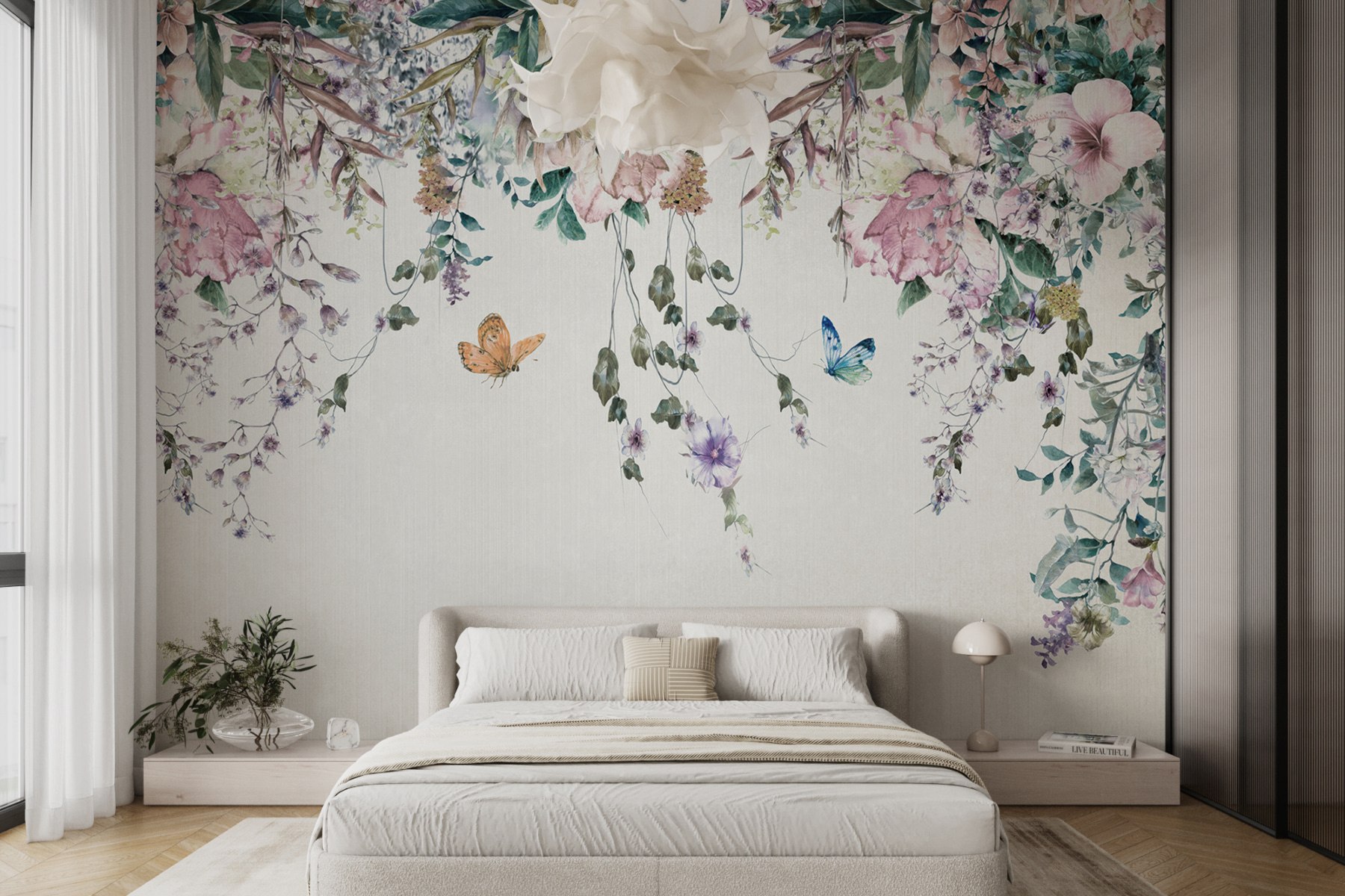 Este mural não é apenas uma decoração – é um ambiente. Imagine-se a relaxar depois de um longo dia, rodeado de flores e borboletas flutuantes… tranquilo, certo? É como ter o seu próprio pedaço de paraíso. Então, porquê esperar? Deixe que as suas paredes contem uma história de elegância e de encanto vivo!