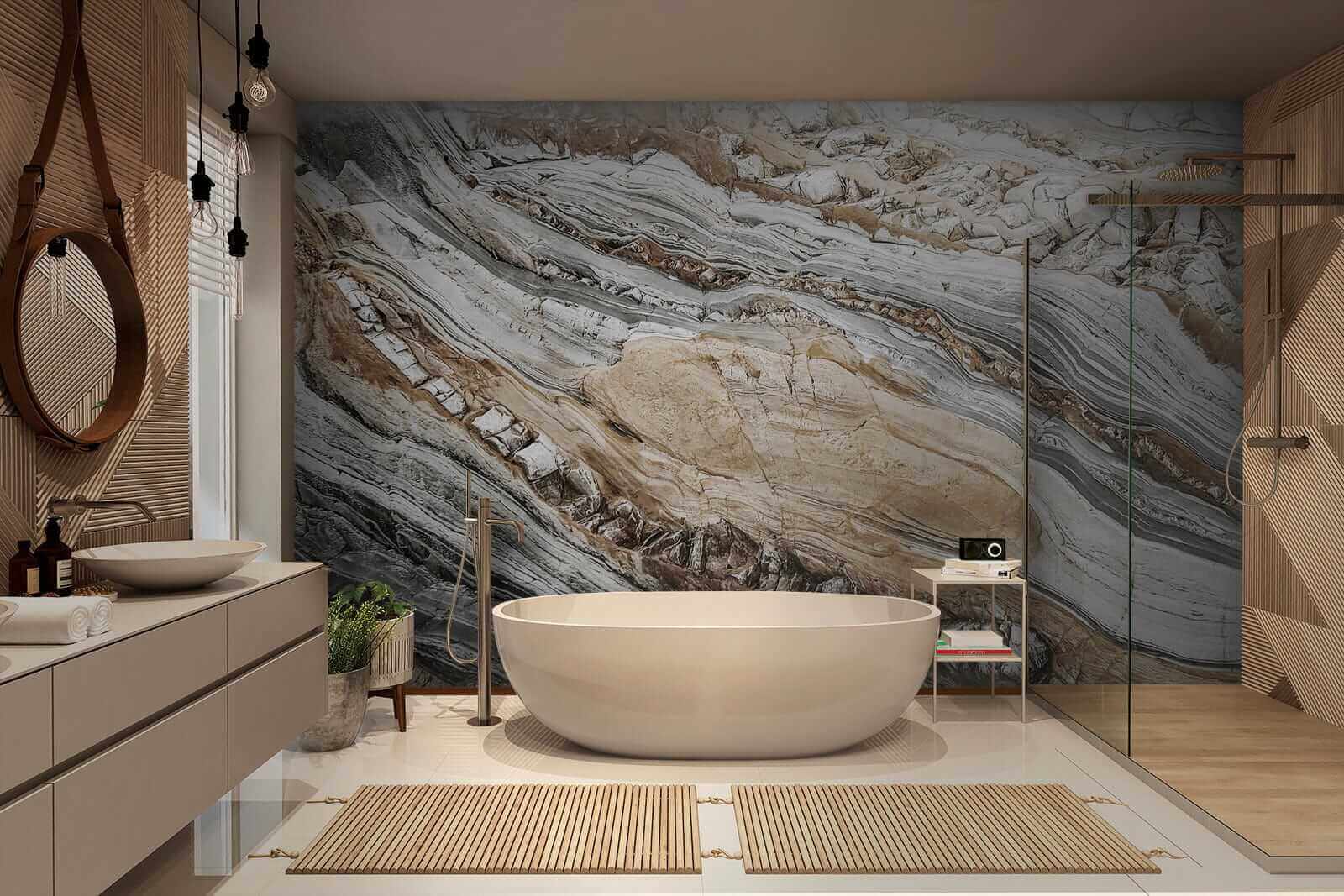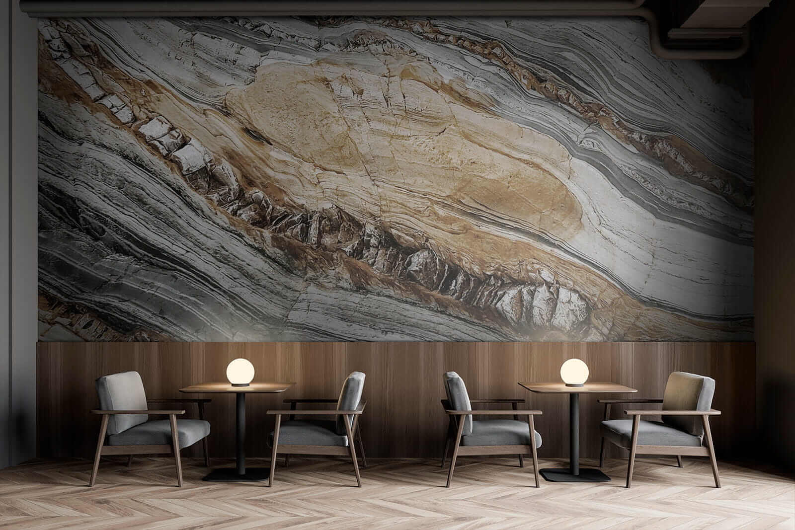 Imagine isto: entra na sua sala de estar e BAM – aí está, uma exibição hipnotizante de camadas de rocha natural em tons de terra suaves. Este mural de parede é como a arte da natureza, trazendo uma vibração terrena e de base para o seu espaço. Tem este incrível efeito 3D – quase parece que se pode estender a mão e tocar nessas texturas de mármore.