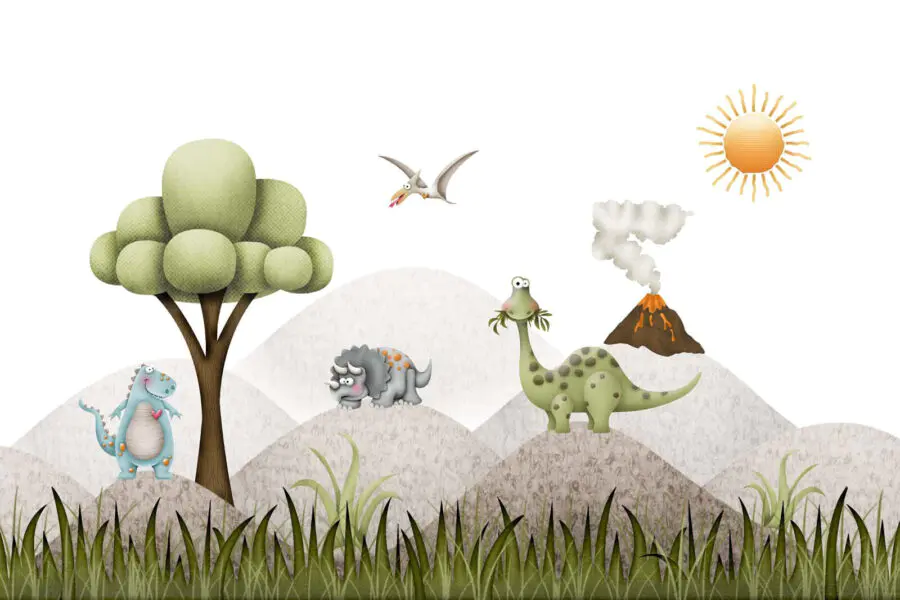 Transforme qualquer quarto num país das maravilhas pré-histórico com este mural encantador com dinossauros de desenhos animados a vaguear por uma paisagem divertida. Imagine pequenos aventureiros a explorar os seus sonhos de dinossauro, com um simpático T-Rex e um gentil brontossauro a vigiar. As cores suaves e o design extravagante criam uma atmosfera alegre, perfeita para estimular a criatividade e a alegria. É quase como ter um mini Jurassic Park na parede! Os pais também podem dar por si a esgueirar-se para um pouco de nostalgia – quem não gosta de um bom sonho com tema de dinossauro? Perfeito para creches, salas de jogos ou qualquer sítio onde as crianças possam dar largas à sua imaginação!