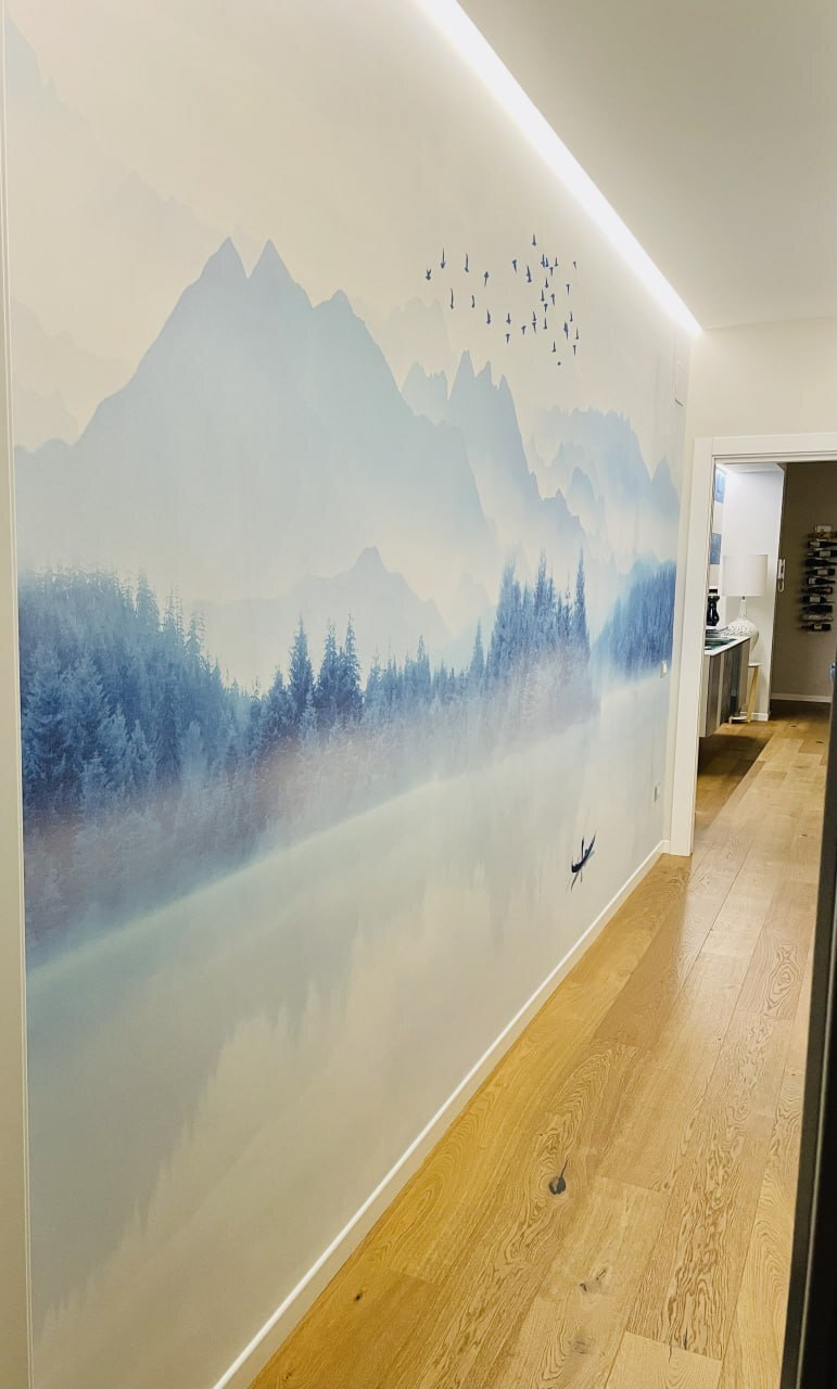 O que é ainda mais fixe? As montanhas enevoadas ao fundo dão-lhe aquela sensação de sonho, quase mágica. Quase se sente o cheiro dos pinheiros e ouve-se o bater silencioso das asas. É o local perfeito para uma chávena de café de manhã ou para pensamentos profundos ao fim da tarde, certo? Além disso, é versátil – faz parte da categoria “Murais de Parede Populares” por uma razão. Toda a gente parece adorar a tranquilidade que traz.