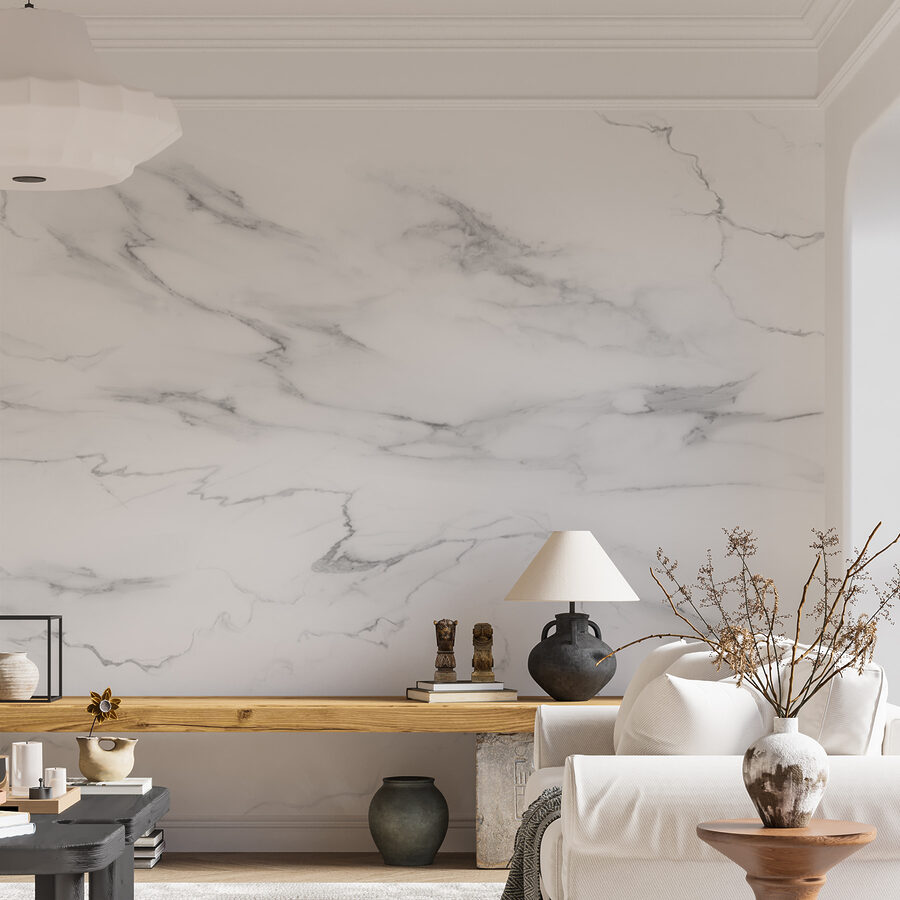 3 avaliações de Papel de parede Superfície de mármore branco com veios pretos