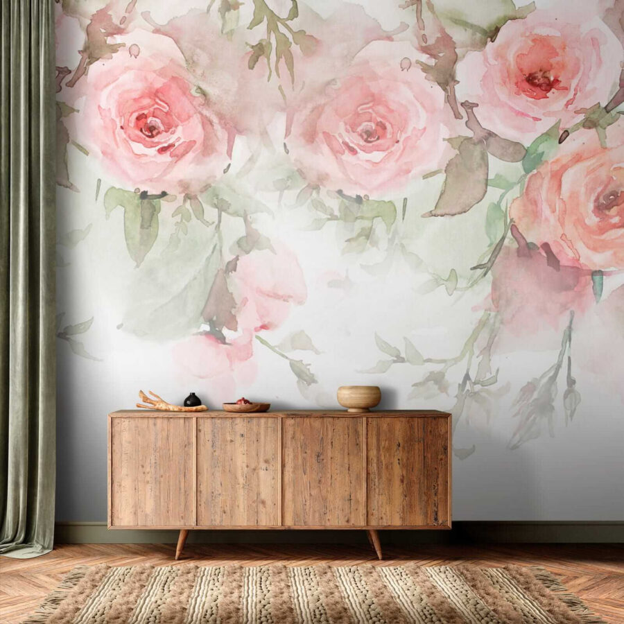 Transforme qualquer divisão num oásis em flor com este suave mural floral em aguarela. Imagine acordar com uma explosão de pastéis suaves, como se a primavera tivesse entrado suavemente em sua casa. Estas flores de sonho misturam-se sem esforço nas suas paredes, tornando qualquer espaço mais convidativo. Os amigos podem fazer uma pausa a meio da conversa, cativados pelas vibrações serenas. É o tipo de cenário que faz com que cada pausa para o café pareça uma pequena fuga. Perfeito para um recanto de leitura acolhedor ou para uma cozinha animada, acrescenta um toque de natureza sem a necessidade de manutenção. Porque não convidar um pouco de beleza para dentro de casa?