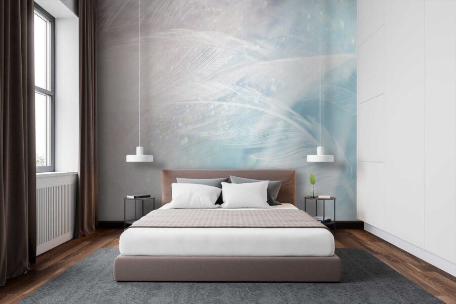 Papel de parede Penas delicadas num fundo azul suave. (REF: u34954)