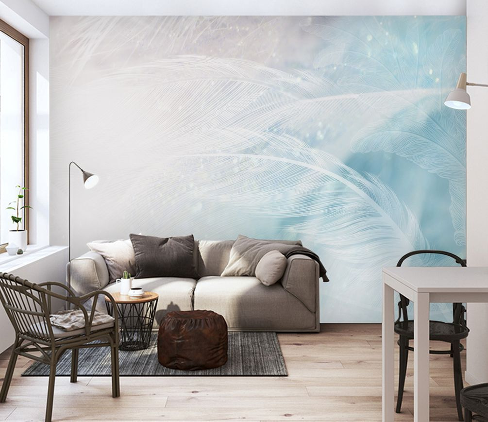 Papel de parede Penas delicadas num fundo azul suave. (REF: u34954)