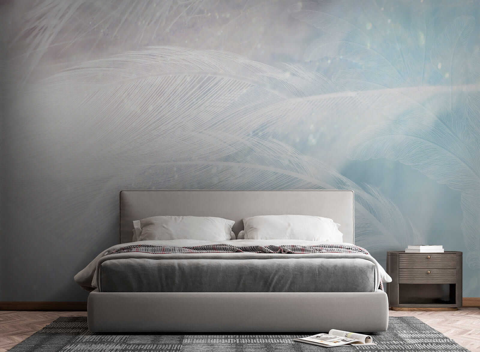Quer pretenda um quarto de sonho ou um canto calmo no seu escritório, este mural enquadra-se perfeitamente, acrescentando uma pitada de beleza de aguarela e muita tranquilidade. É quase como se estivesse embrulhado num abraço da natureza sempre que entra na sala. Os azuis claros e os detalhes de penas saudáveis fazem com que tudo pareça um pouco mais suave, um pouco mais descontraído. Confie em mim, as suas paredes vão agradecer-lhe por isso!