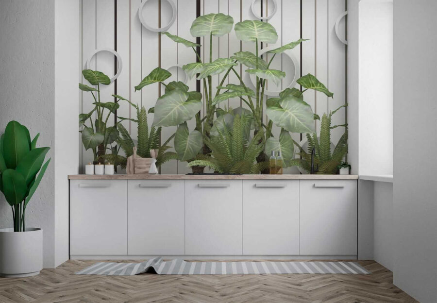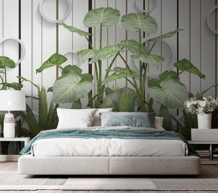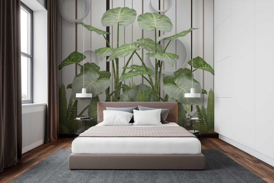 Imagine isto: paredes cobertas com folhas vibrantes e exuberantes contra aquelas riscas elegantes… a sério, é como ter um toque da selva na sua sala de estar sem a humidade! Este mural “Folhas exuberantes contra uma parede às riscas” mistura sem esforço a essência calmante da natureza com um toque moderno. Quer seja um amante de plantas com um polegar ligeiramente negro ou apenas desejoso de sentir o sabor do ar livre, este mural está ao seu alcance – não é necessário regar. Imagine-se a relaxar no seu sofá, sentindo aquela vibração fresca e verde a passar por si… dá vida a toda a sala! Além disso, os pormenores circulares adicionam um toque peculiar e 3D – é de chamar a atenção. É perfeito para injetar um pouco de charme e serenidade em qualquer espaço. Não é apenas um mural de parede; é um iniciador de conversa, um impulsionador de humor, uma pequena fatia do paraíso frondoso. 🌿