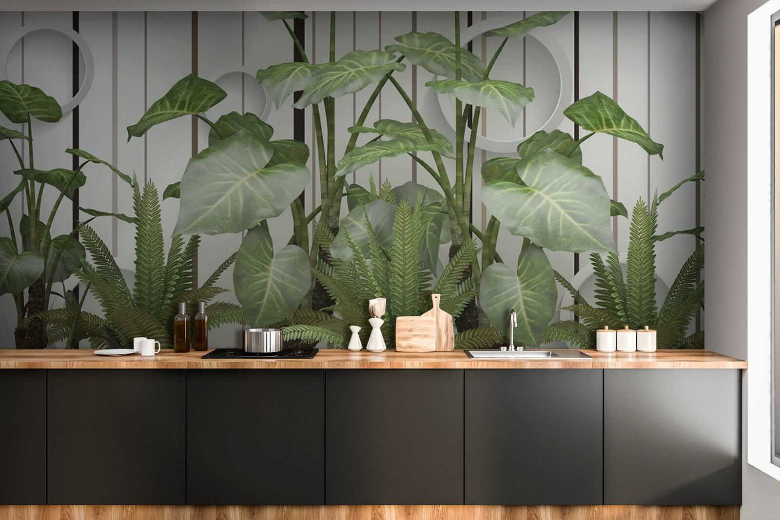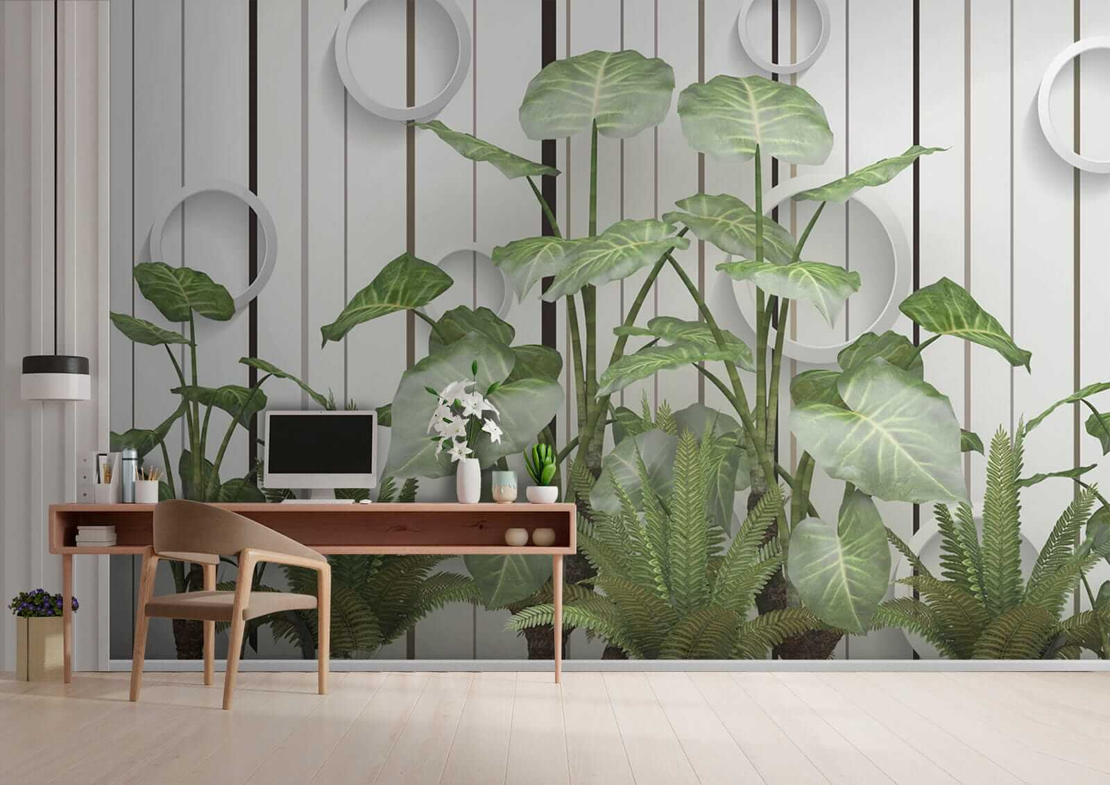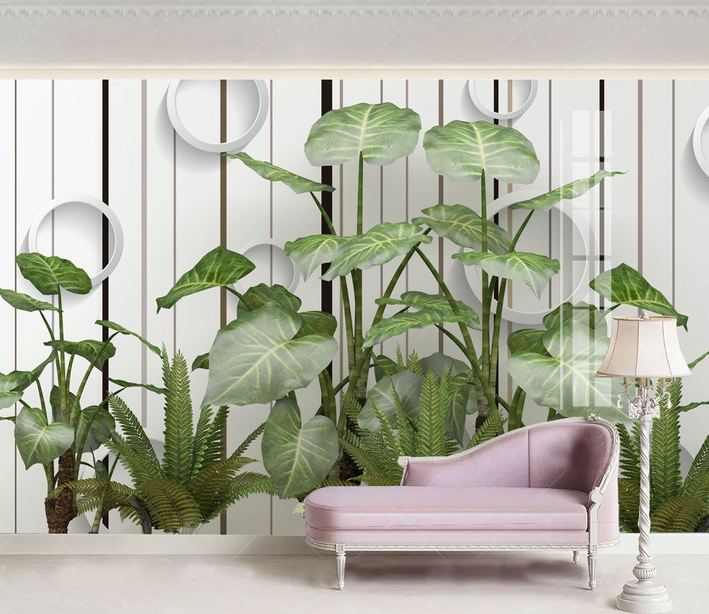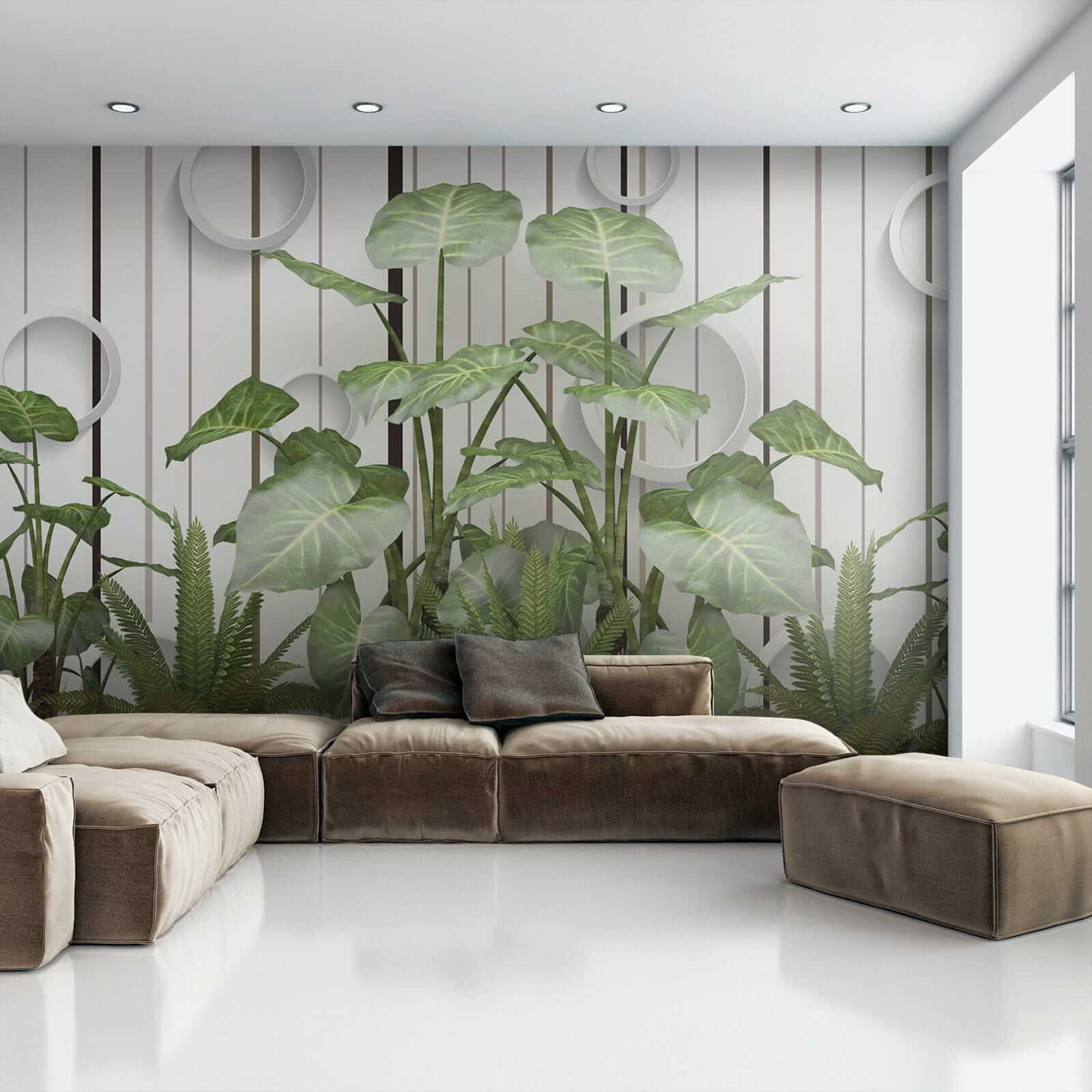 Imagine isto: paredes cobertas com folhas vibrantes e exuberantes contra aquelas riscas elegantes… a sério, é como ter um toque da selva na sua sala de estar sem a humidade! Este mural “Folhas exuberantes contra uma parede às riscas” mistura sem esforço a essência calmante da natureza com um toque moderno. Quer seja um amante de plantas com um polegar ligeiramente negro ou apenas desejoso de sentir o sabor do ar livre, este mural está ao seu alcance – não é necessário regar. Imagine-se a relaxar no seu sofá, sentindo aquela vibração fresca e verde a passar por si… dá vida a toda a sala! Além disso, os pormenores circulares adicionam um toque peculiar e 3D – é de chamar a atenção. É perfeito para injetar um pouco de charme e serenidade em qualquer espaço. Não é apenas um mural de parede; é um iniciador de conversa, um impulsionador de humor, uma pequena fatia do paraíso frondoso. 🌿