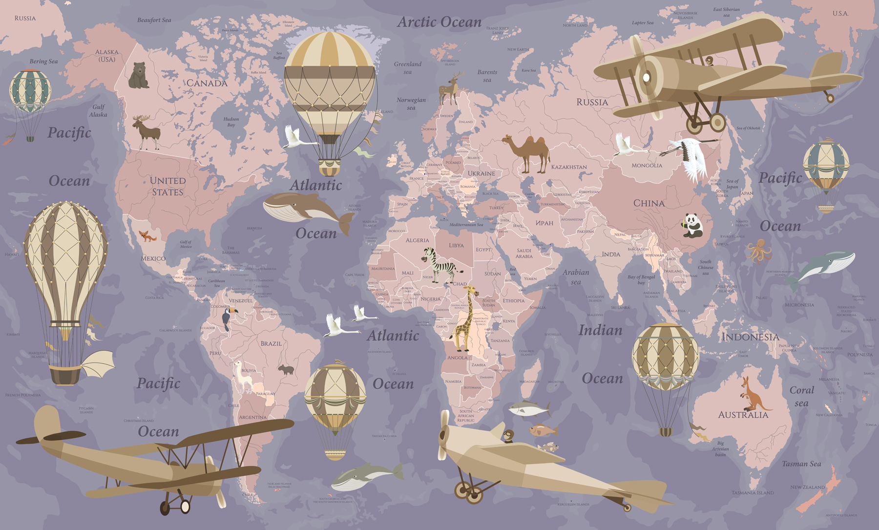 Transforme qualquer divisão numa zona de aventura com este mural extravagante do Mapa do Mundo. Imagine-o – uma tela vibrante salpicada de aviões e balões de ar quente, despertando a imaginação à primeira vista. As crianças vão deliciar-se a ver os continentes enquanto sonham com terras distantes. É como ter um passaporte para a criatividade mesmo na parede!