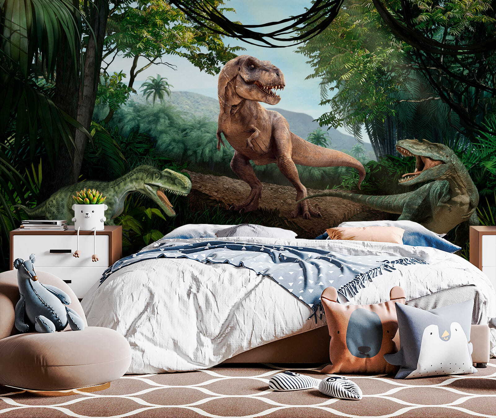O seu filho é obcecado por dinossauros? Ou talvez apenas adore transformar paredes aborrecidas em conversas de cair o queixo? Entre no Jurássico com este mural vibrante e realista – é como se fosse a sua própria máquina do tempo! Imagine acordar com um T-Rex todos os dias (menos a parte assustadora, claro). Perfeito para quartos de crianças, áreas de lazer ou até mesmo para aquele escritório peculiar em casa – um elevador de humor instantâneo. O seu efeito 3D dá-lhe uma incrível sensação de profundidade, quase como se pudesse entrar nessas selvas exuberantes. Pronto para libertar alguma magia pré-histórica? Rawr-some!