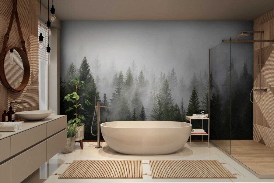 Transforme uma parede simples numa fuga serena com o mural Foggy Forest. Não se trata apenas de um mural; é um bilhete para um encantador passeio matinal por entre árvores imponentes, onde o nevoeiro tece magia em cada canto. Imagine isto: a beber café enquanto está rodeado por verdes suaves e nevoeiro tranquilo, vai sentir-se como se estivesse numa pequena cabana acolhedora na floresta. Perfeita para uma sala de estar ou quarto, traz a natureza para dentro de casa sem os insectos. Além disso, é um ótimo início de conversa – quem não gostaria de falar sobre a sua própria escapadela na floresta? Traga as vibrações calmas para casa e deixe que cada olhar o transporte para aquele momento de névoa matinal.