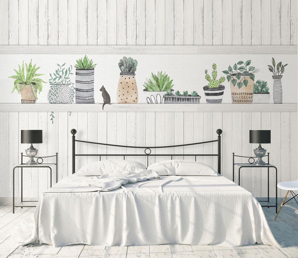 Os murais de parede são produzidos no tamanho exato, em tiras fáceis de aplicar até 50 cm de largura.