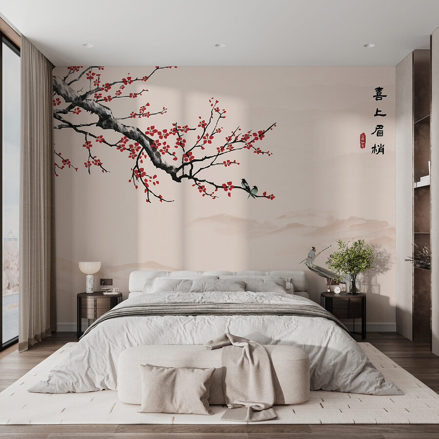 Enfeite o seu espaço com este mural de parede “Ramo de árvore com flores vermelhas”! Imagine acordar com isto – elegantes ramos a atravessar a sua parede, repletos de flores vermelhas brilhantes. É como se um toque da natureza tivesse beijado o seu quarto enquanto dormia. Perfeito para salas de estar, quartos, ou mesmo para um recanto de leitura acolhedor.