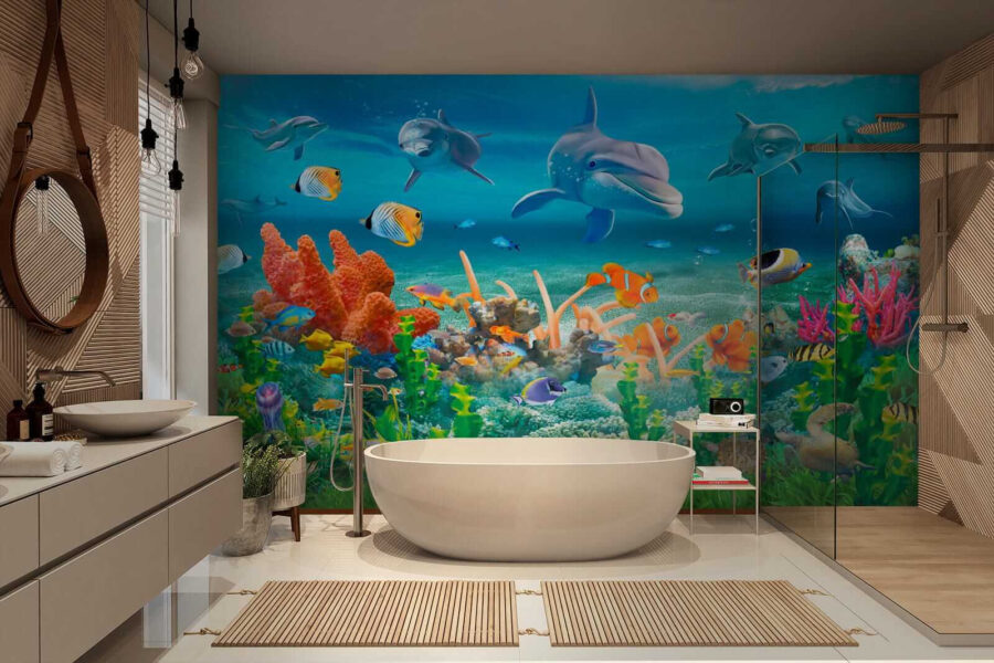 Imagine abrir os olhos todas as manhãs para uma explosão de alegria – este mural vibrante “Dolphin swimming in the water” pode fazer exatamente isso! Perfeito para o quarto dos miúdos ou para o seu espaço de vida peculiar, está repleto de golfinhos brincalhões e amigos do mar coloridos. A obra de arte é tão viva que quase se espera que os alegres golfinhos saltem da parede! É como ter uma janela para um paraíso subaquático, sem a areia nos sapatos. Este mural traz uma pitada de felicidade à beira-mar e um toque de capricho diretamente para o seu espaço. Mergulhe num mundo de imaginação e veja a sala iluminar-se com sorrisos e gargalhadas. Não se trata apenas de decoração – é uma experiência.