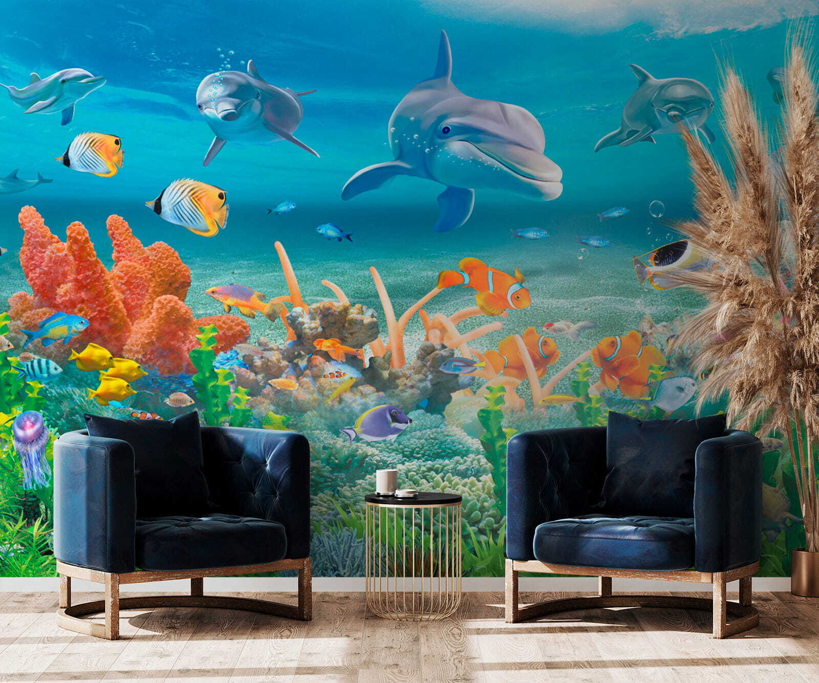 Imagine abrir os olhos todas as manhãs para uma explosão de alegria – este mural vibrante “Dolphin swimming in the water” pode fazer exatamente isso! Perfeito para o quarto dos miúdos ou para o seu espaço de vida peculiar, está repleto de golfinhos brincalhões e amigos do mar coloridos. A obra de arte é tão viva que quase se espera que os alegres golfinhos saltem da parede! É como ter uma janela para um paraíso subaquático, sem a areia nos sapatos. Este mural traz uma pitada de felicidade à beira-mar e um toque de capricho diretamente para o seu espaço. Mergulhe num mundo de imaginação e veja a sala iluminar-se com sorrisos e gargalhadas. Não se trata apenas de decoração – é uma experiência.