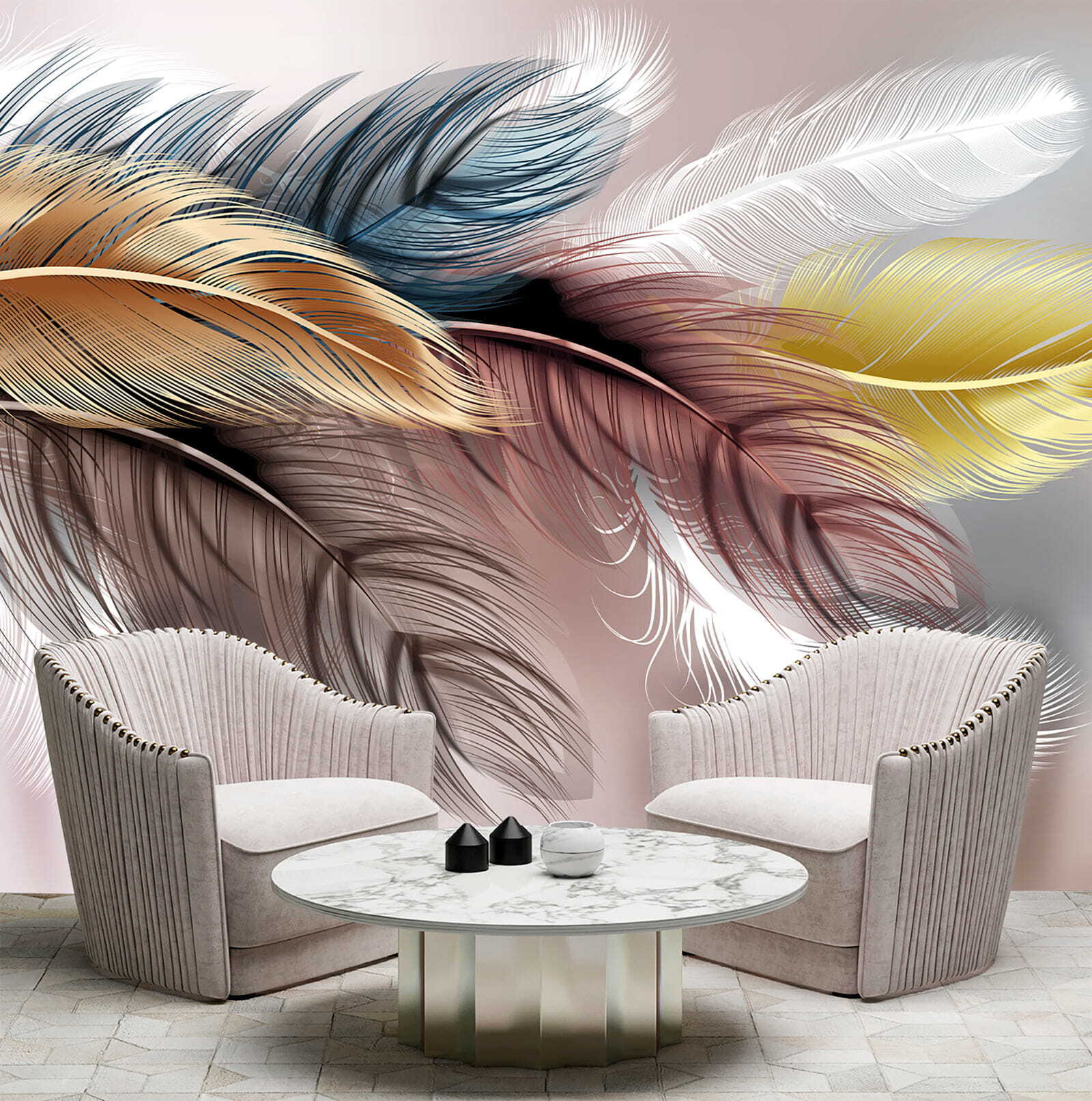 1 avaliação de Papel de parede Penas vivas em tons pastel