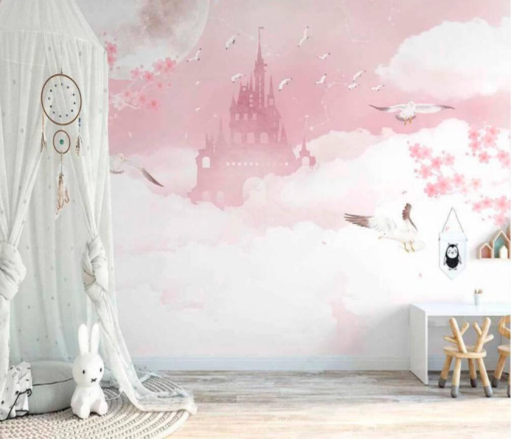 Veja este “Fotomurais Pássaro Branco Voando no Céu” de sonho – é como entrar numa fantasia caprichosa! Perfeito para quartos de crianças, especialmente se o seu filho adora contos de fadas e cenas encantadoras. Imagine isto: nuvens macias e fofas, pássaros a voar livremente, um castelo mágico ao fundo e delicadas flores de cerejeira… É como se uma história de embalar ganhasse vida.