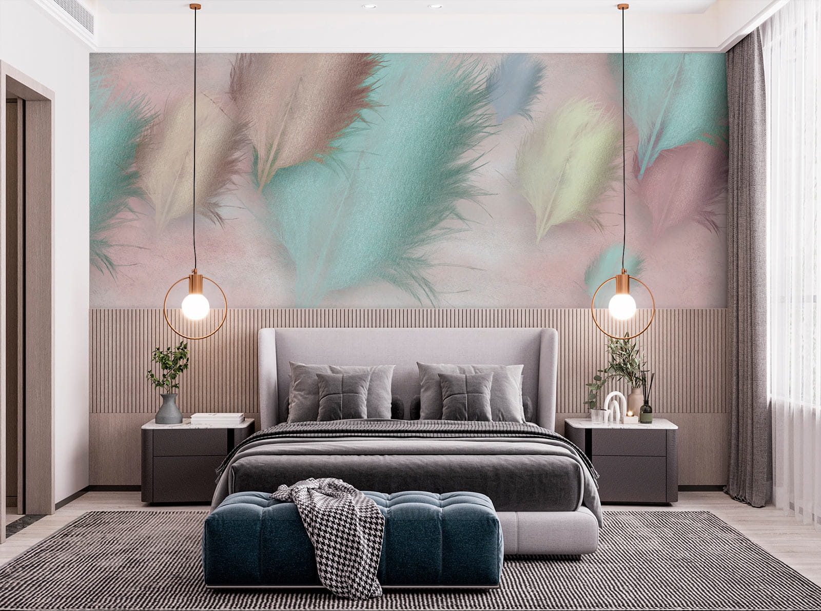 O mural que encomendámos é espantoso! As cores são lindas, e a qualidade é de primeira qualidade. Foi fácil de instalar, e tem um aspeto fantástico no nosso quarto. Recomendo vivamente!