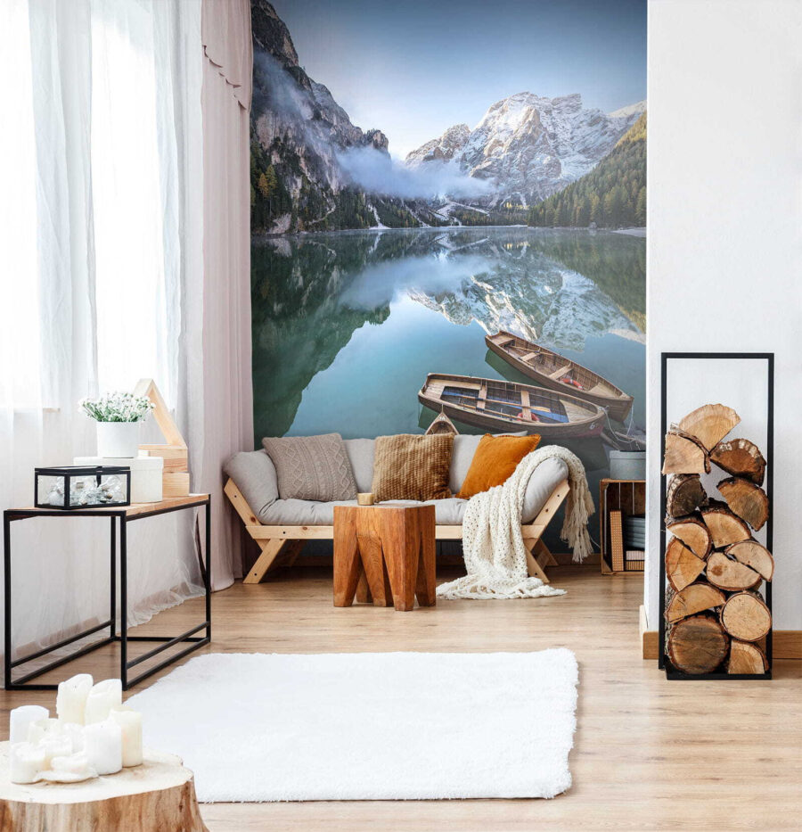 Imagine isto: chegar a casa depois de um longo dia e ver-se transportado para um tranquilo lago de montanha, com barcos a balançar preguiçosamente na água… É exatamente isso que este maravilhoso mural traz para o seu espaço! Com as suas montanhas majestosas e águas serenas, esta impressão é perfeita para quem deseja uma lufada de ar fresco sem sair do seu quarto.
