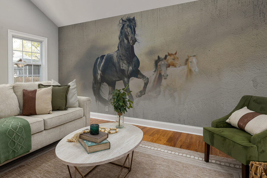Transforme o seu espaço com este impressionante mural de parede que apresenta um majestoso cavalo preto com uma crina esvoaçante, galopando como se tivesse acabado de ouvir as melhores notícias de sempre. Imagine entrar numa sala onde esta beleza está orgulhosa, quase convidando-o a juntar-se a ela numa aventura selvagem. Não se trata apenas de decoração; é uma experiência. Os tons quentes e terrosos criam uma atmosfera acolhedora mas vibrante, tornando-a perfeita para uma sala de estar ou um escritório. Os amigos vão olhar duas vezes e talvez até perguntem se o cavalo vem cá dizer olá. Perfeito para os amantes dos animais ou para quem gosta de um toque de espírito indomável na sua casa. Os cavalos transmitem uma sensação de liberdade, não é verdade? Então, porque não deixar que este o inspire diariamente? Perfeito para dar carácter e calor, será certamente o tema de conversa da sala.