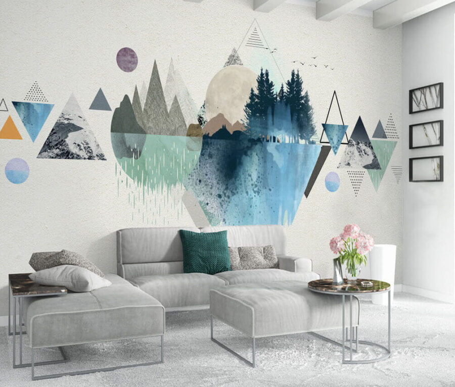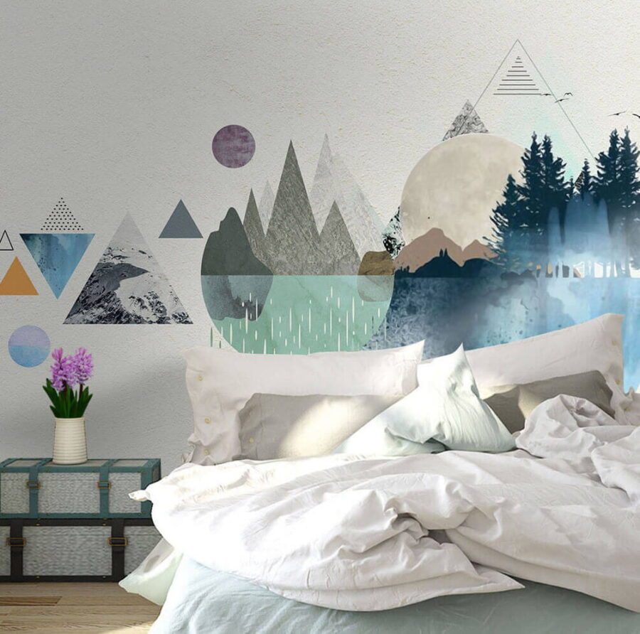 Transforme qualquer divisão numa escapadela serena com o mural de parede “Água e árvores numa paisagem”. Imagine entrar num espaço que parece um refúgio tranquilo na floresta — sem os insetos, claro! Este design deslumbrante combina aquarelas suaves e formas geométricas, criando um cenário tão calmante como um ribeiro murmurante.