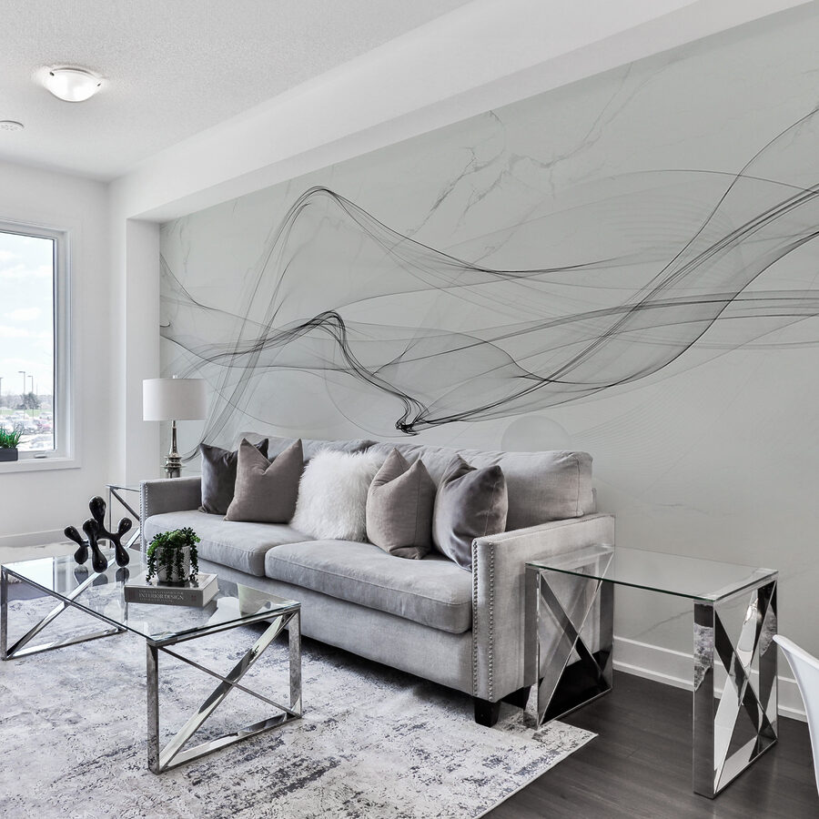 Imagine isto na sua sala de estar – mural de parede “Abstract Waves on Marble”. Linhas suaves e fluidas que quase parecem um delicado fumo preto a dançar sobre um fundo elegante de mármore. É uma daquelas peças que podem transformar um espaço, fazendo-o sentir-se elegante e sem esforço. Imagine-se a ler um livro enquanto os padrões rodopiantes lhe roubam a atenção de vez em quando… é como ter uma peça de arte moderna em sua casa. Esta é uma peça que dá que falar, acredite. Perfeito para quem gosta de uma mistura de minimalismo e um toque de capricho.