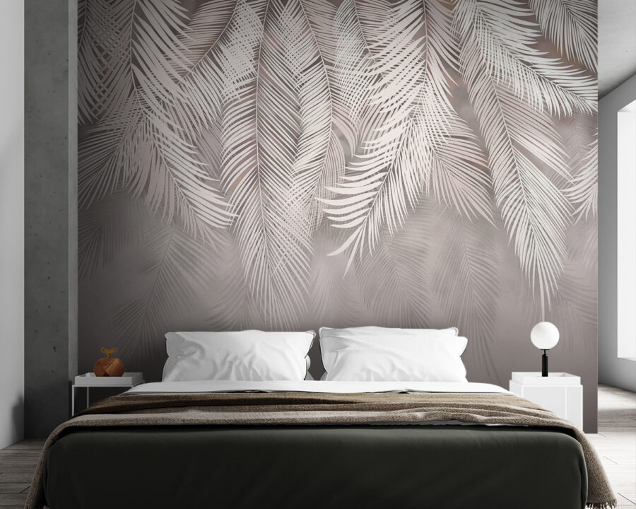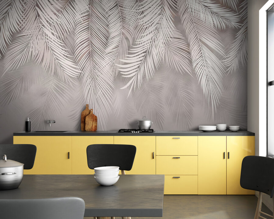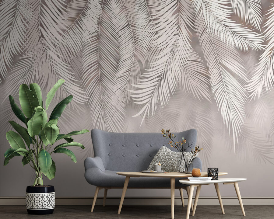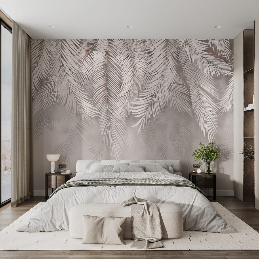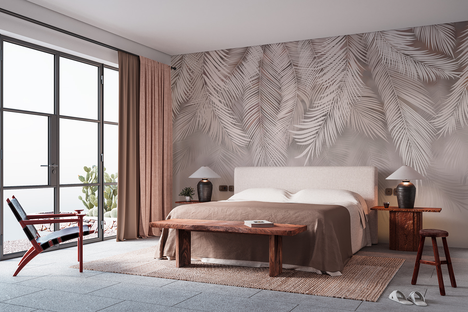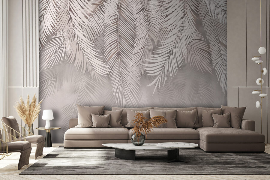 4 avaliações de Papel de parede Elegantes folhas de palmeira sobre fundo bege