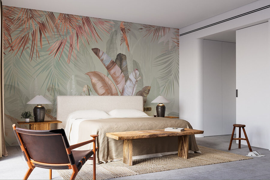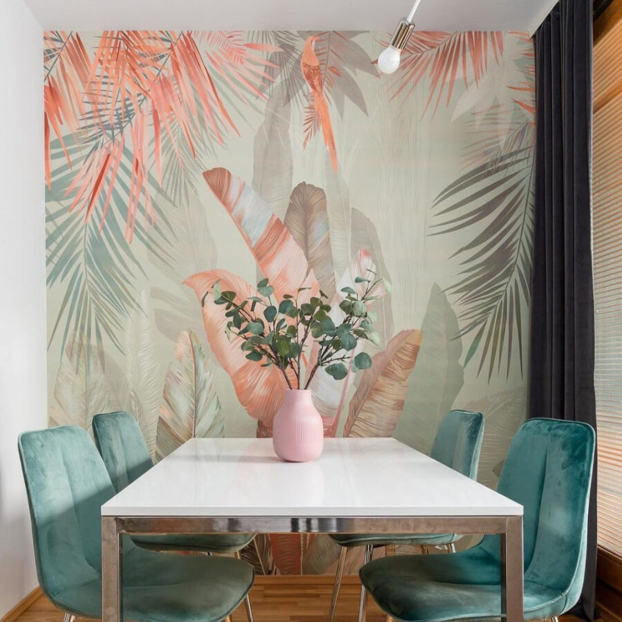8 avaliações de Papel de parede Folhas tropicais em tons pastel