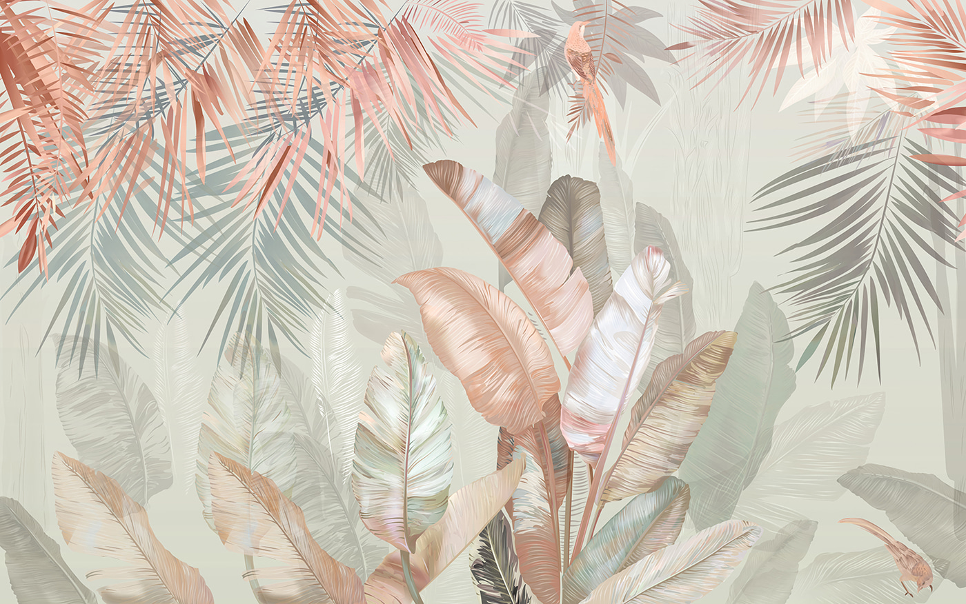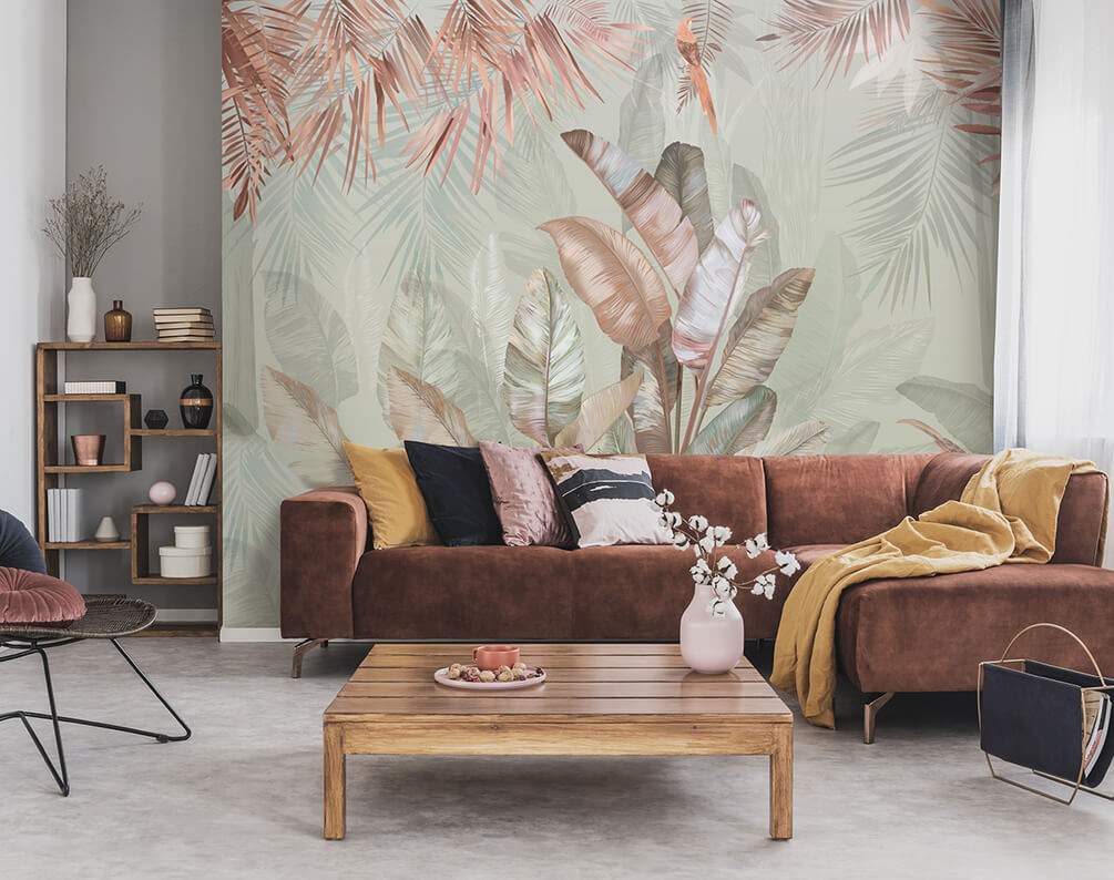 8 avaliações de Papel de parede Folhas tropicais em tons pastel