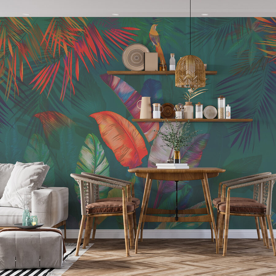 1 avaliação de Papel de parede Cena colorida de folhagem de selva tropical