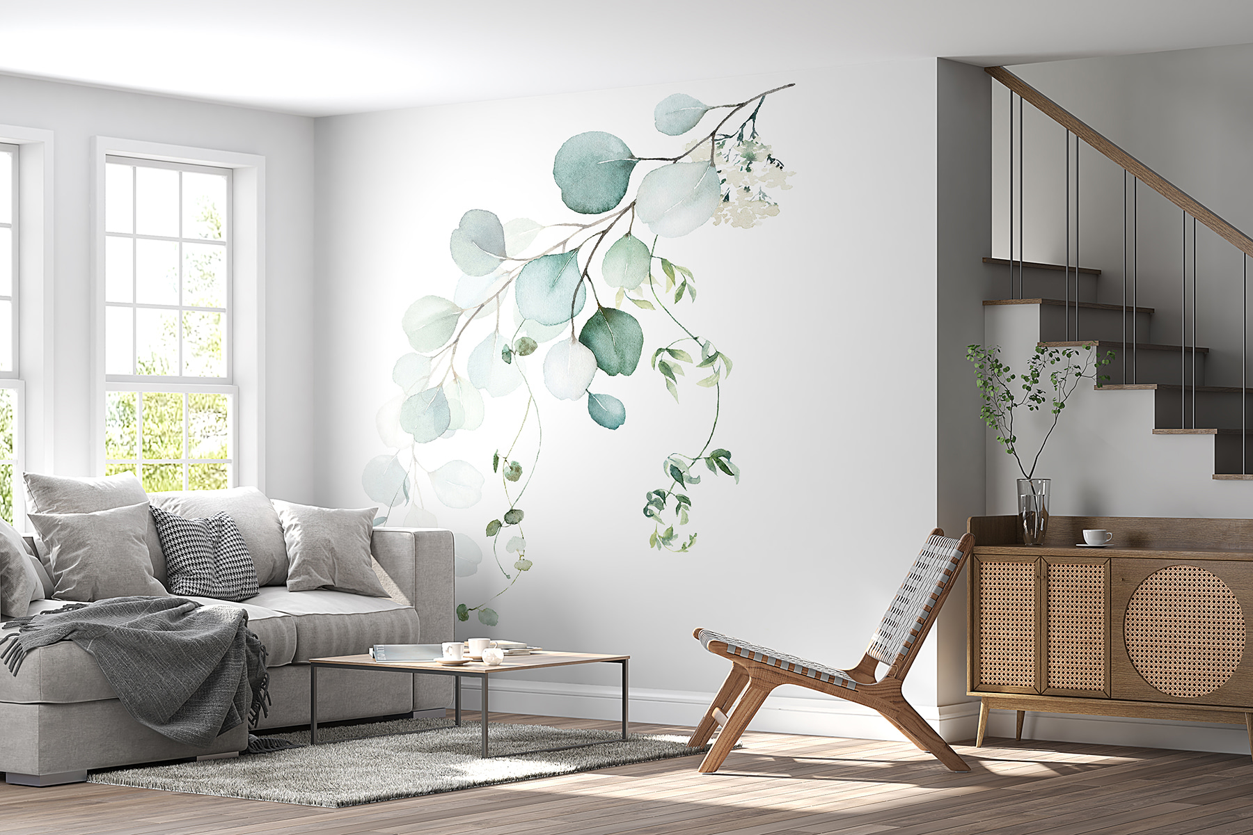 Imagine entrar num espaço onde a natureza sussurra suavemente ao seu ouvido. Este mural de parede, com vegetação delicada em aguarela, é como uma lufada de ar fresco para qualquer divisão. Os verdes e brancos suaves podem iluminar instantaneamente o ambiente, fazendo com que até o canto mais acolhedor se sinta um pouco mais aberto e convidativo. É perfeito para aquela situação em que as paredes precisam de ser levantadas. Imagine-se a beber um chá enquanto a luz do sol entra, lançando sombras divertidas desses desenhos de folhas no seu chão. É como trazer uma fatia do ar livre para dentro de casa – menos os insectos, claro – e quem não quereria isso? Perfeito para uma sala de estar ou para um recanto de leitura, este mural acrescenta sem esforço um toque de elegância e serenidade. Uma lembrança subtil de que a natureza está sempre à distância de um olhar.