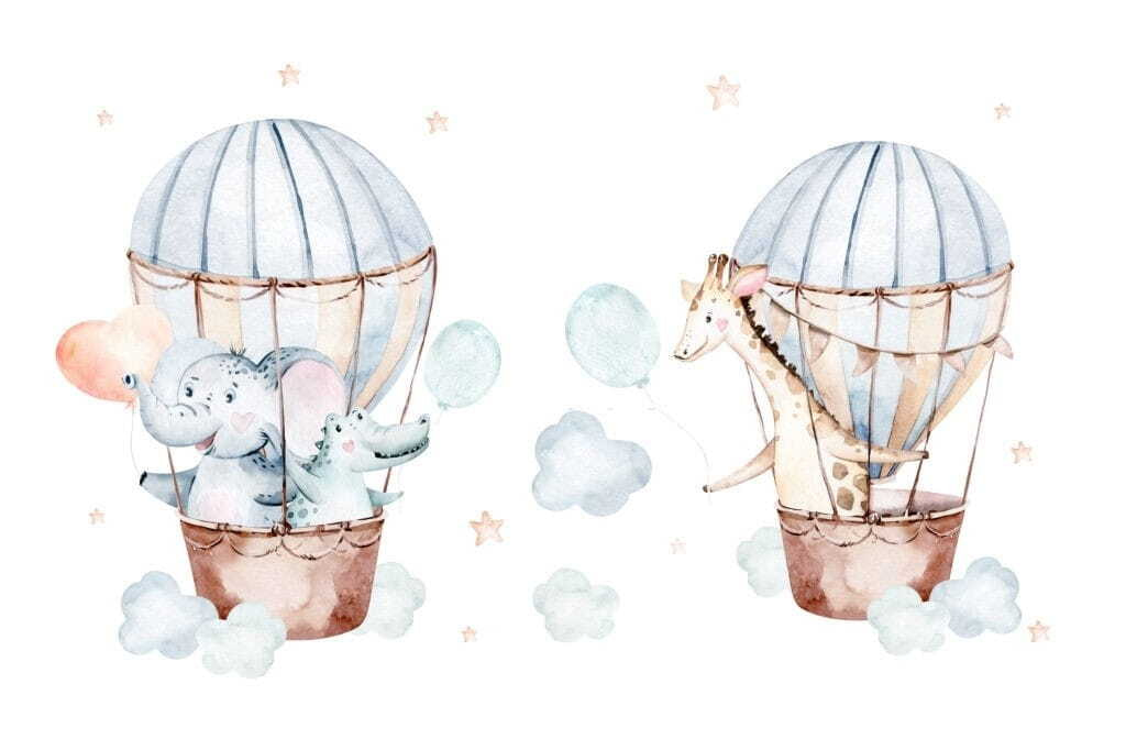 Elevate any space with this whimsical wall mural featuring a delightful duo of animals in hot air balloons. Just picture it—an adorable elephant, a cheeky crocodile, and a graceful giraffe, all floating amongst fluffy clouds. It’s like a little adventure right on your wall! Perfect for a child’s room or a cozy nook, this mural brings a playful vibe that sparks imagination. Friends will smile and feel a little giddy every time they walk by. Plus, it’s a sweet reminder that sometimes, it’s the little things—balancing balloons and friendships—that lift us up. Go on, let your walls float with joy!