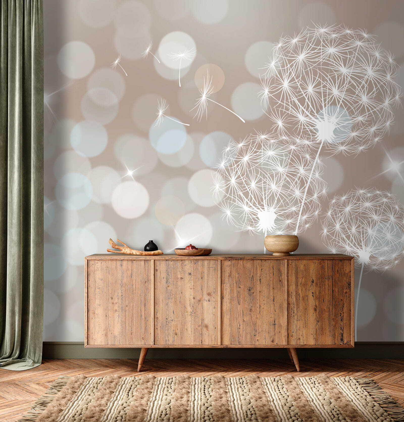 Imaginem acordar todos os dias com esta cena: “Dentes-de-leão de sonho à deriva na luz”. Parece um conto de fadas, não é? Este mural de parede transforma instantaneamente o seu quarto num espaço sereno e mágico. É como uma brisa calma num dia de primavera, fazendo com que os dentes-de-leão flutuem suavemente no ar. Perfeito para qualquer espaço que precise de um toque de natureza e capricho. Este mural tem o dom de fazer com que as divisões pequenas se sintam abertas e arejadas, quase como se estivessem a entrar numa clareira suave e encantada. Ótimo para sonhadores, amantes da natureza ou qualquer pessoa que esteja cansada de paredes em branco!
